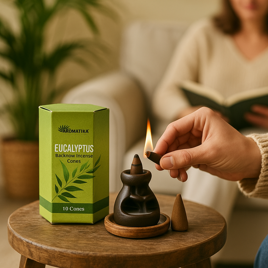 Eucalyptus Backflow este o sursă de prospețime și echilibru. Aprinde-l atunci când simți nevoia de claritate, calm și o atmosferă revigorantă. Fumul curgător și mirosul natural creează un mic ritual de relaxare — perfect pentru orice moment al zilei.