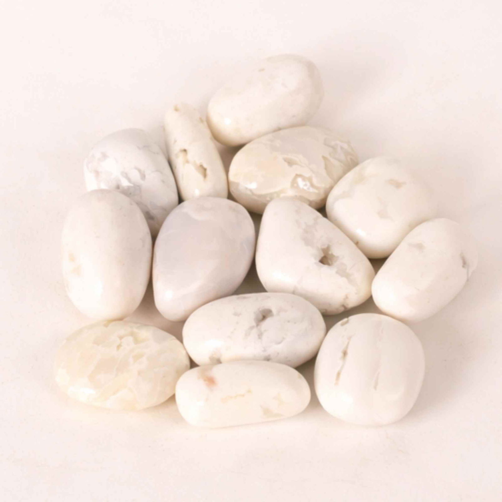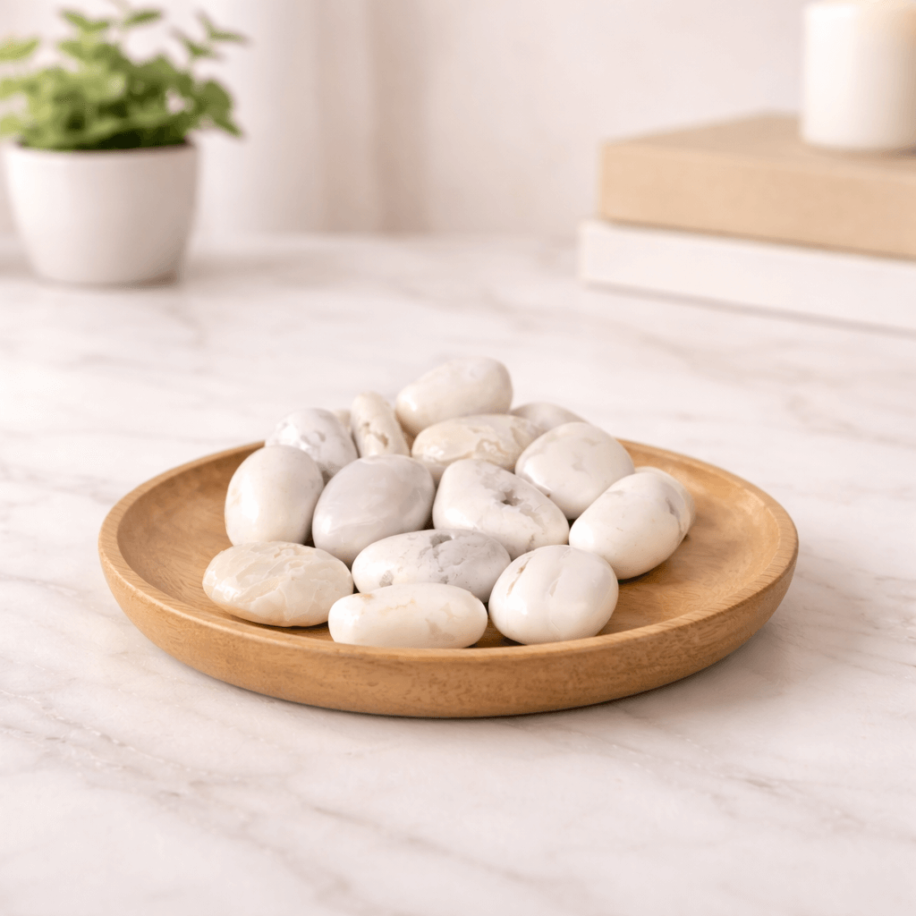 Pietre rulate din agat alb natural, cu proveniență din Indonezia, alese pentru simplitatea și liniștea pe care le sugerează. Un obiect cu sens simbolic, potrivit pentru ritualuri personale, pauze conștiente sau decor discret.