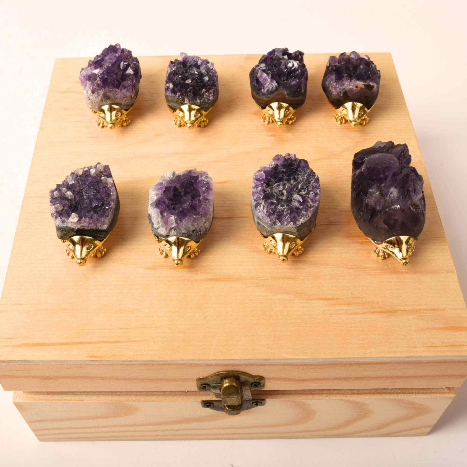 Acest arici decorativ, cu dimensiunea de 4 cm, combina stralucirea culorilor auriu si argintiu cu frumusetea unui cluster de ametist natural. Detaliile fine si luciul metalic se imbina perfect cu tonurile purpurii ale ametistului.