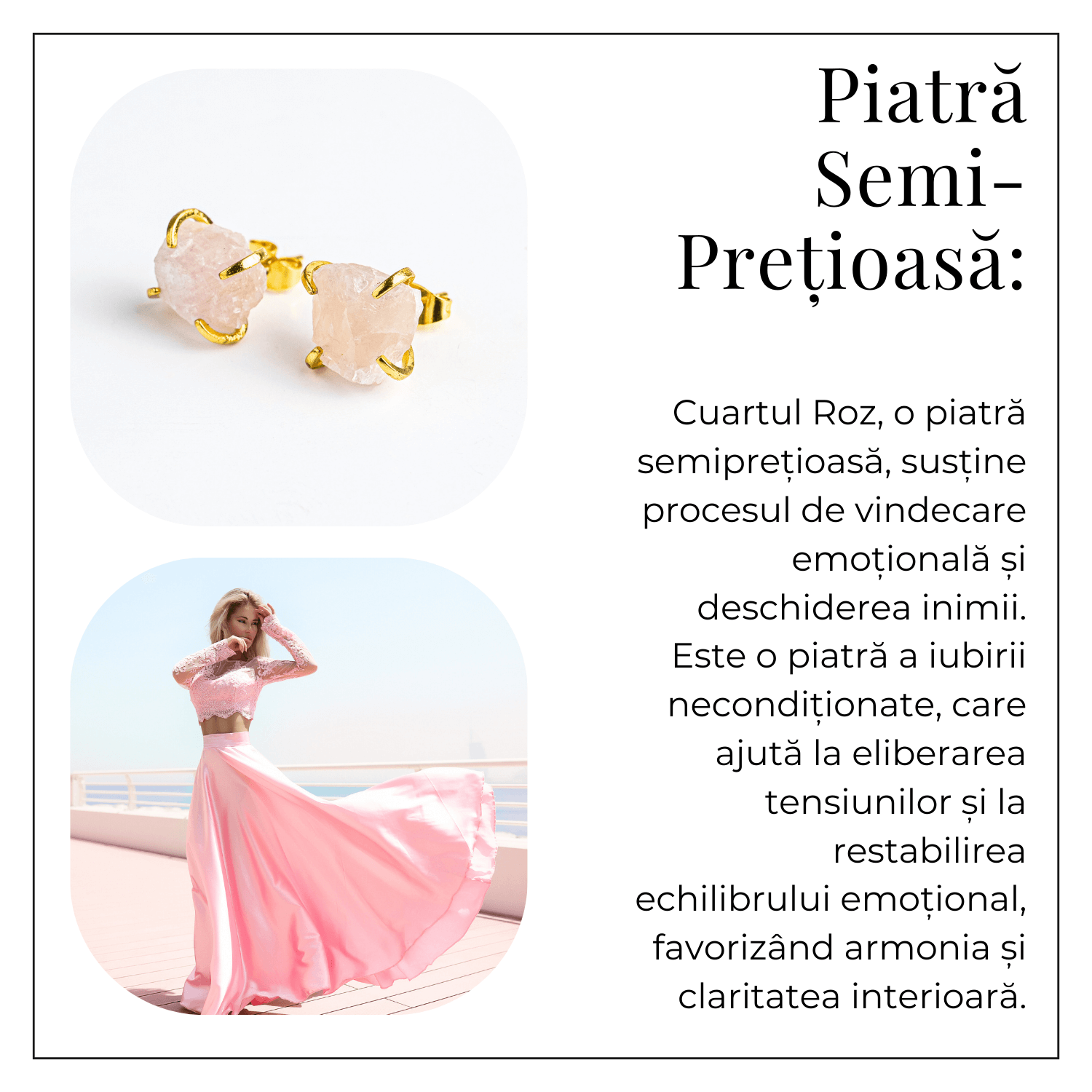 Poartă o bijuterie care trezește iubirea din tine – lasă energia blândă a cuartului roz să-ți inspire afecțiune, vindecare și frumusețe autentică în fiecare zi.