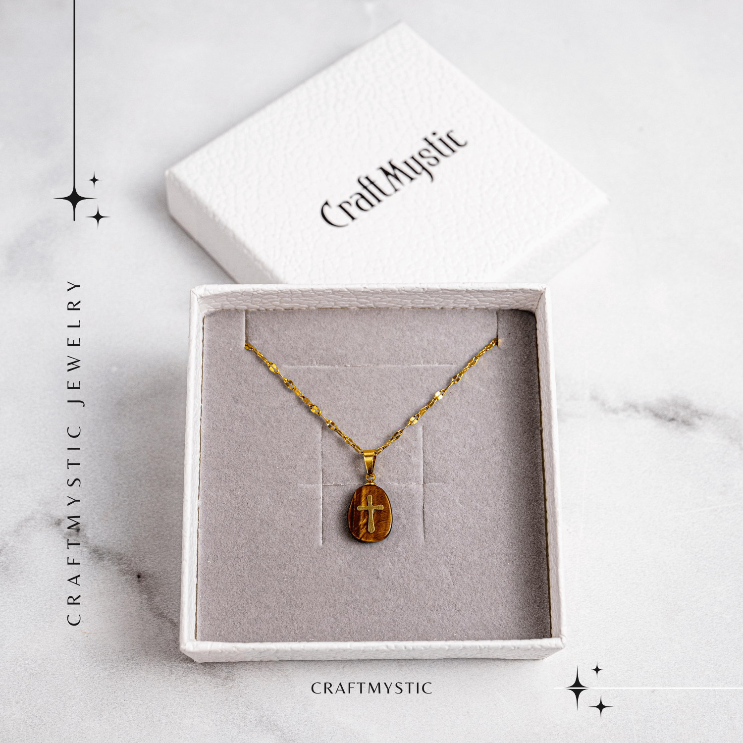 Descoperă secretul puterii interioare și al protecției spirituale într-un colier unic, lucrat manual, ce combină energia incredibilă a Ochiului de Tigru cu simbolul absolut al credinței – crucea.