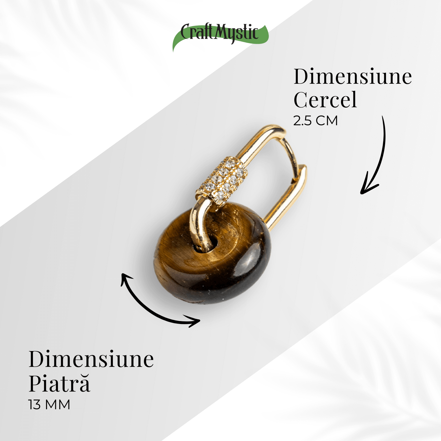 Cerceii „Bijuterie Protectoare” îmbină forța protectoare a Ochiului de Tigru cu simbolismul sacru al formei Pi, amplificând curajul, vitalitatea și protecția energetică a purtătorului. Această combinație este ideală pentru cei care își doresc să-și întărească limitele personale și să atragă succesul.