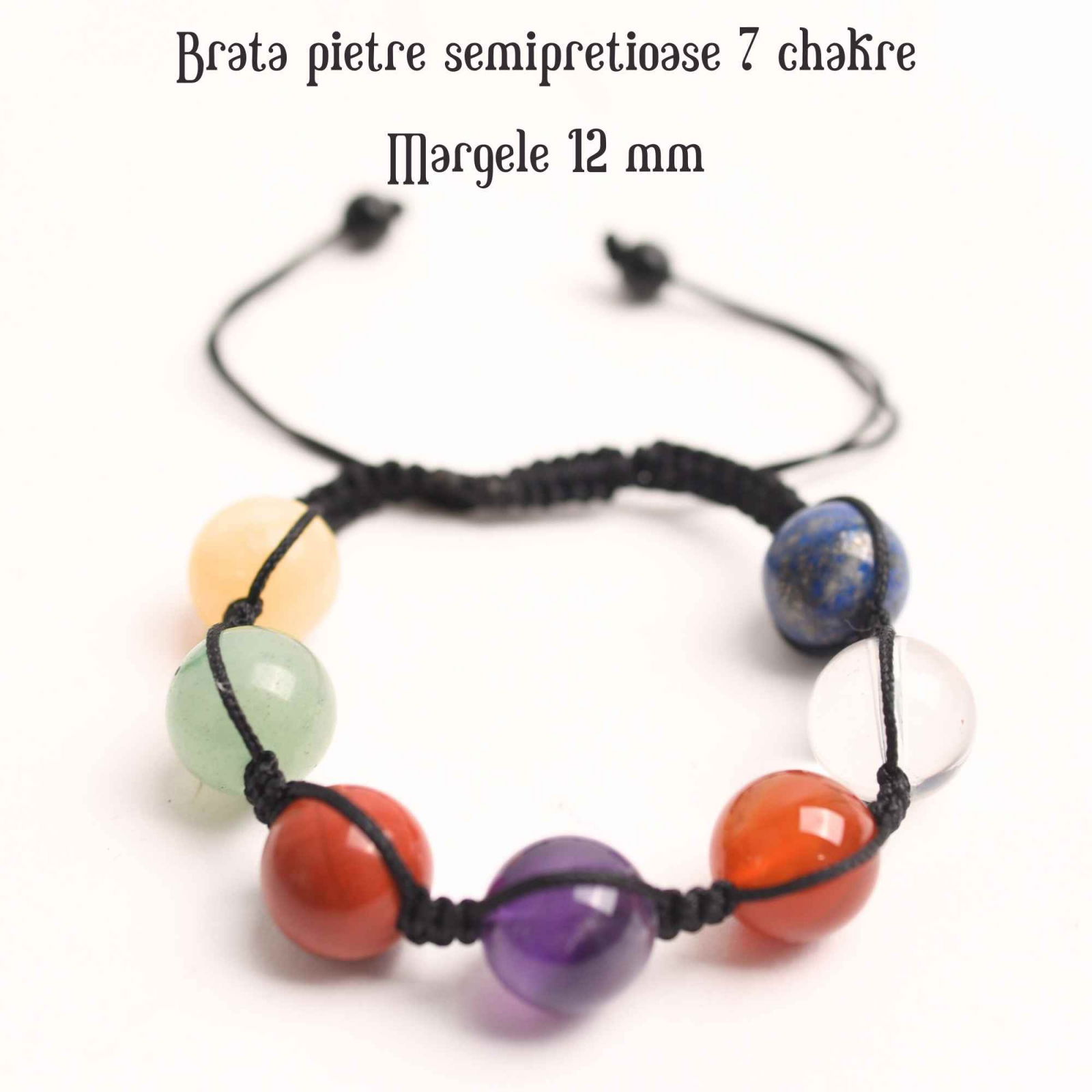 Bratara a 7 Chakre cu Margele de 12 mm din Pietre Semipretioase Naturale - Echilibru si Vindecare