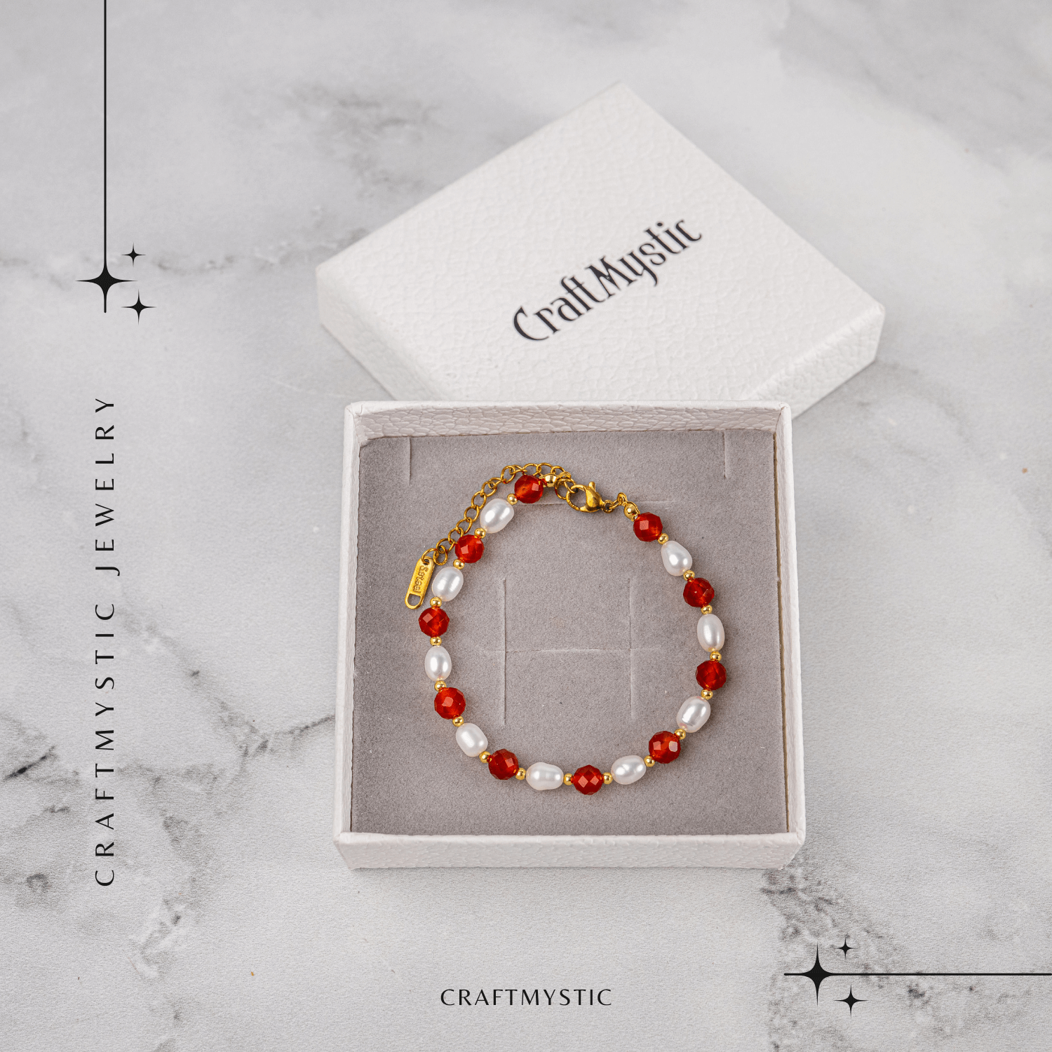 Lasă Agatul Roșu să-ți aprindă puterea interioară, iar perlele să-ți amintească să rămâi blândă, echilibrată și în armonie cu tine însăți.