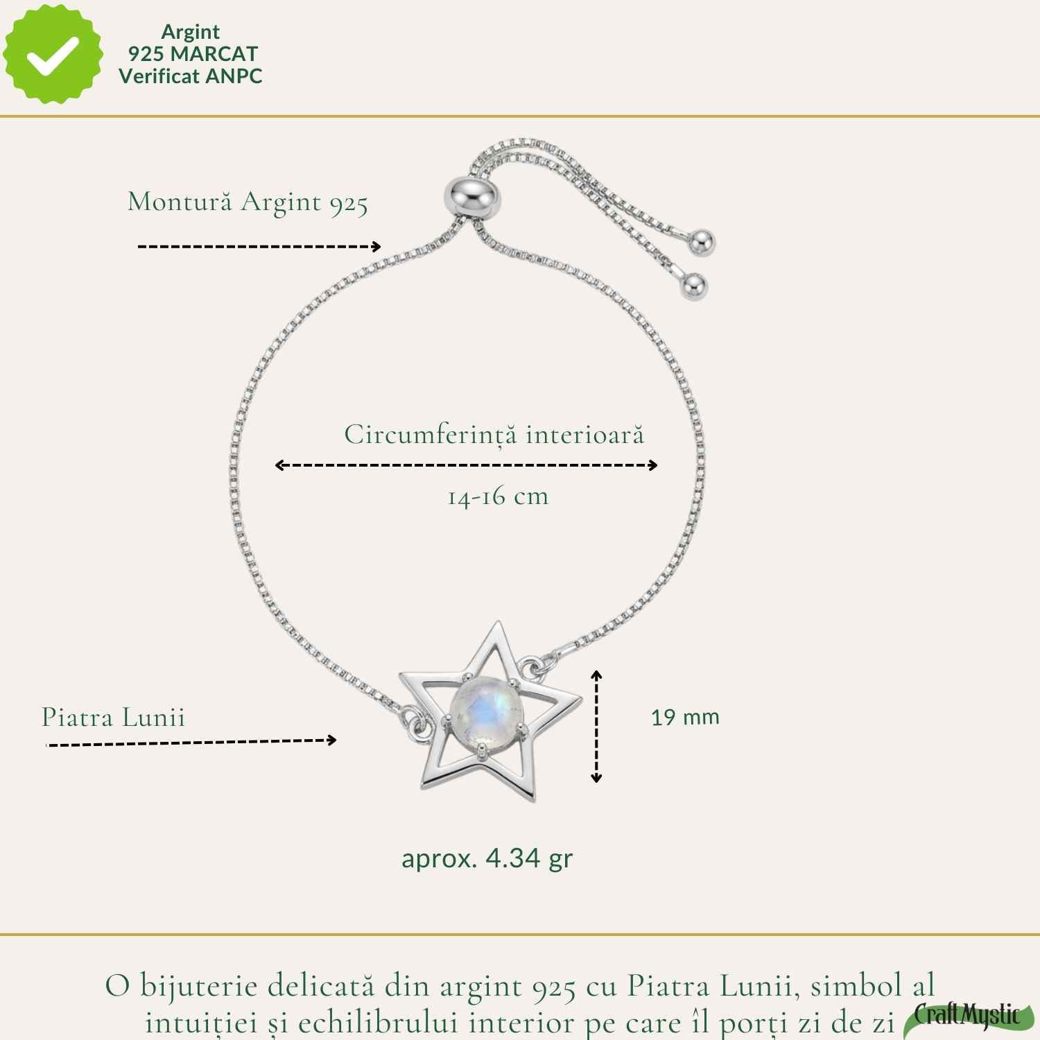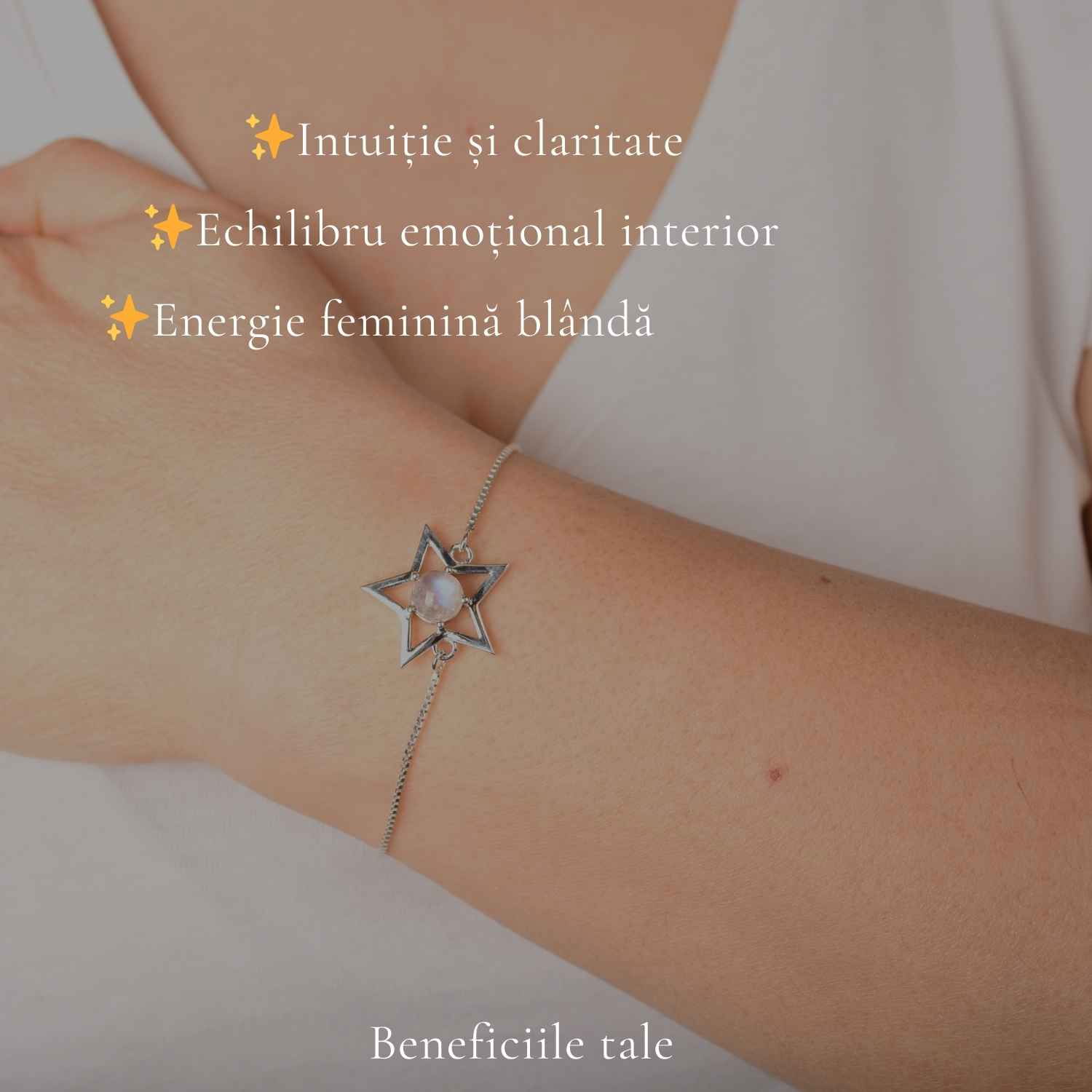 Sunt zile în care ai nevoie de un mic ghid… ceva care să-ți amintească să ai încredere în tine. Brățara cu Piatra Lunii și simbol stea este acel detaliu care te luminează din interior.