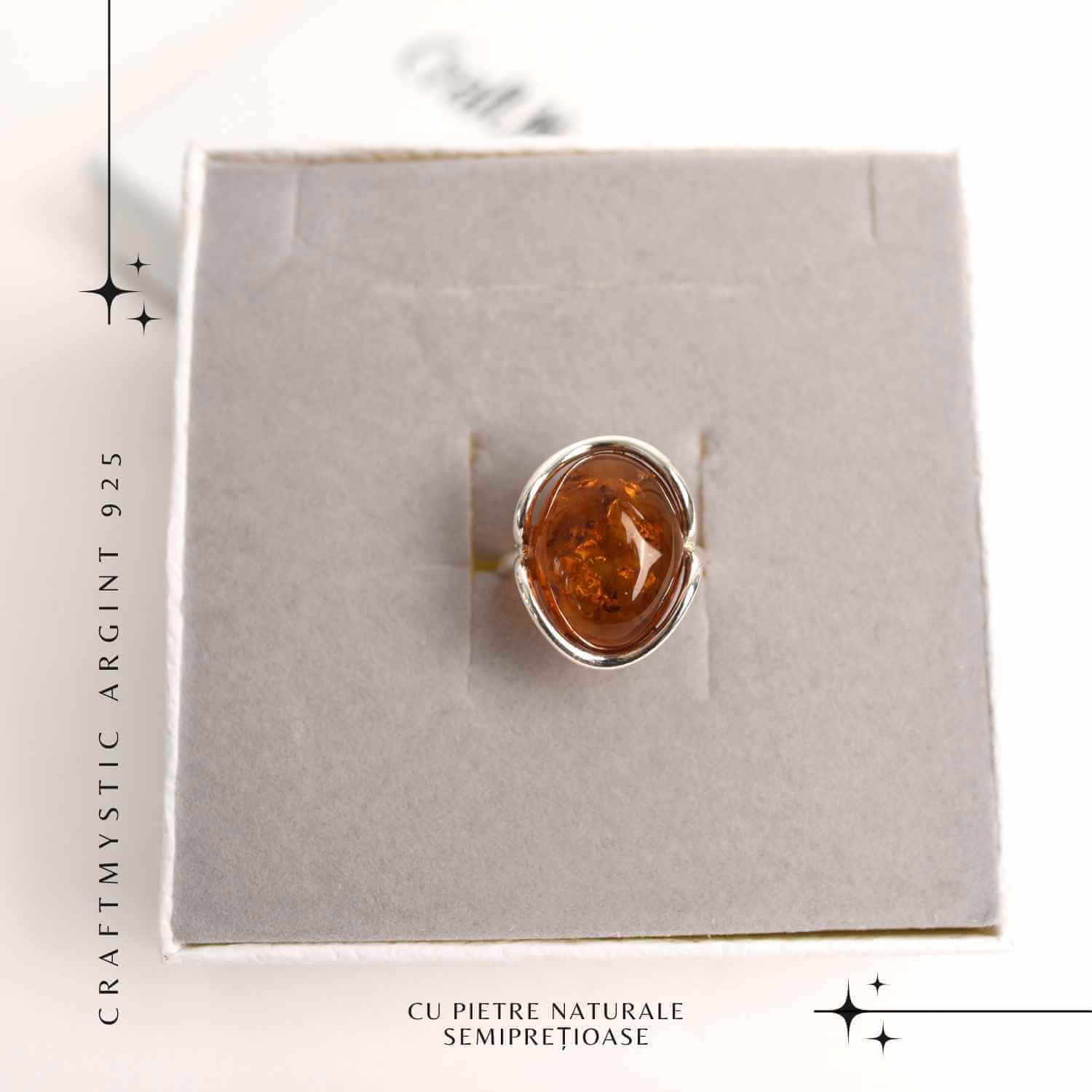 Transformă-ți stilul cu un inel din argint de înaltă calitate, lucrat manual, cu o piatră naturală de chihlimbar maro!