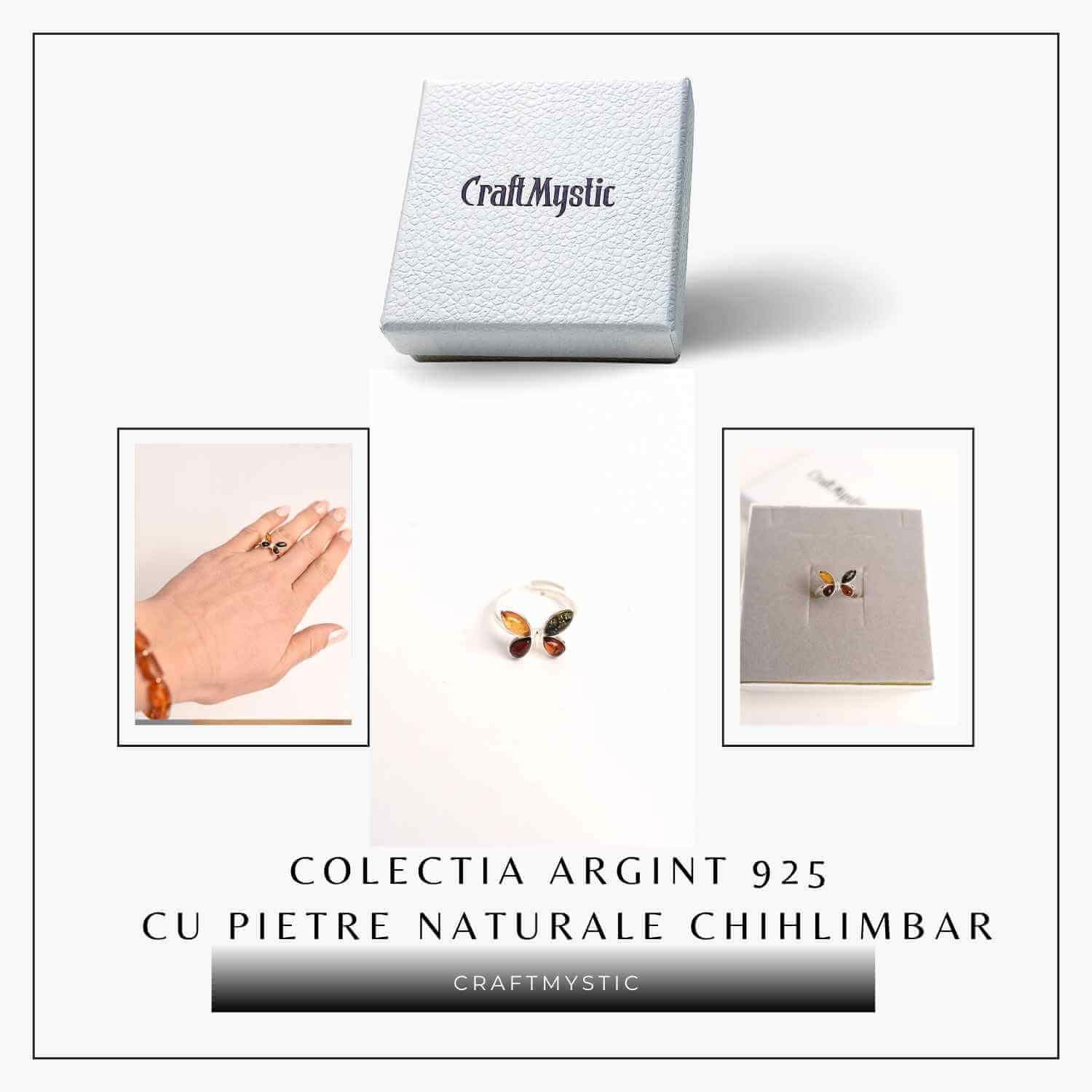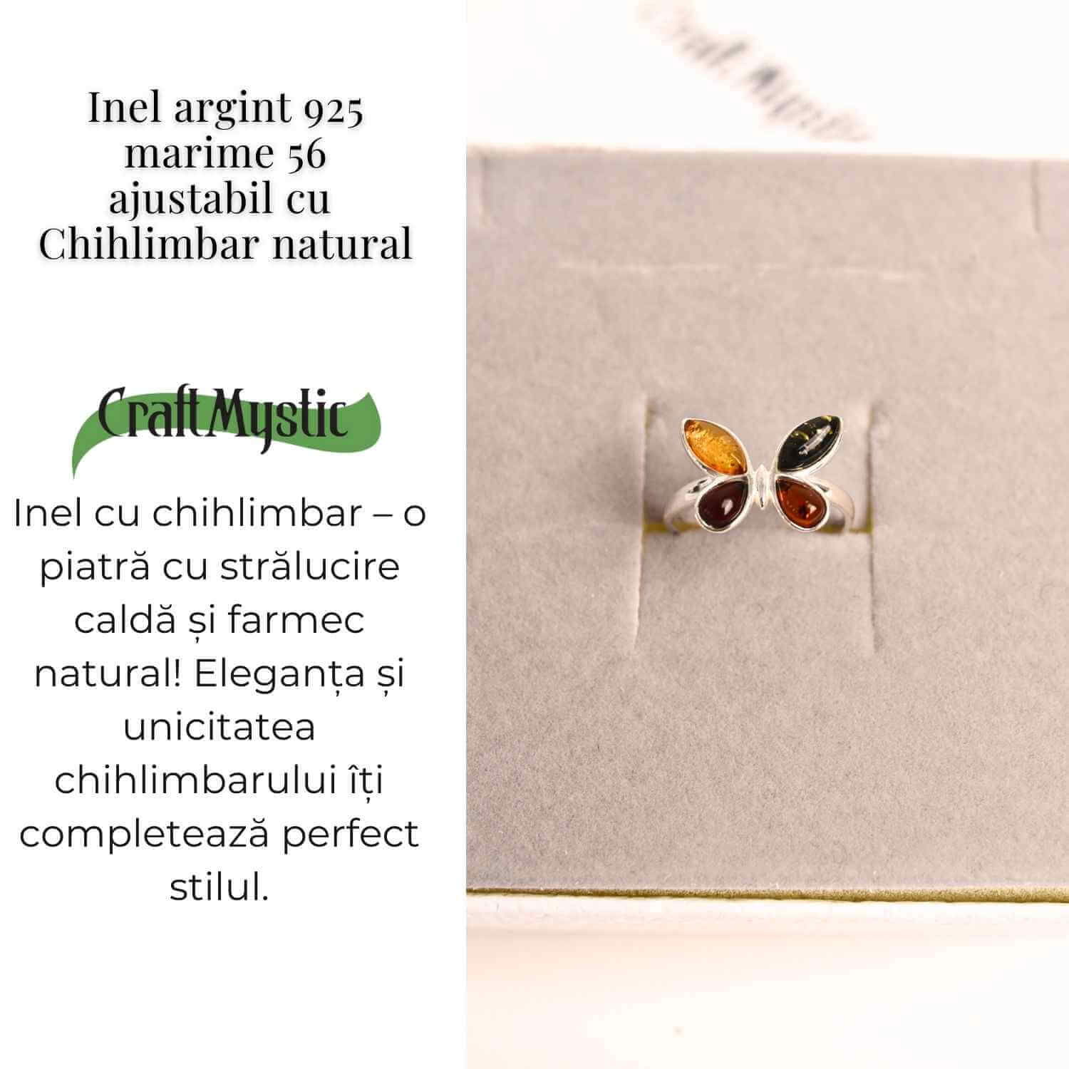Descoperă un inel plin de eleganță și semnificație, lucrat manual din argint 925, cu chihlimbar natural în formă de fluture!
