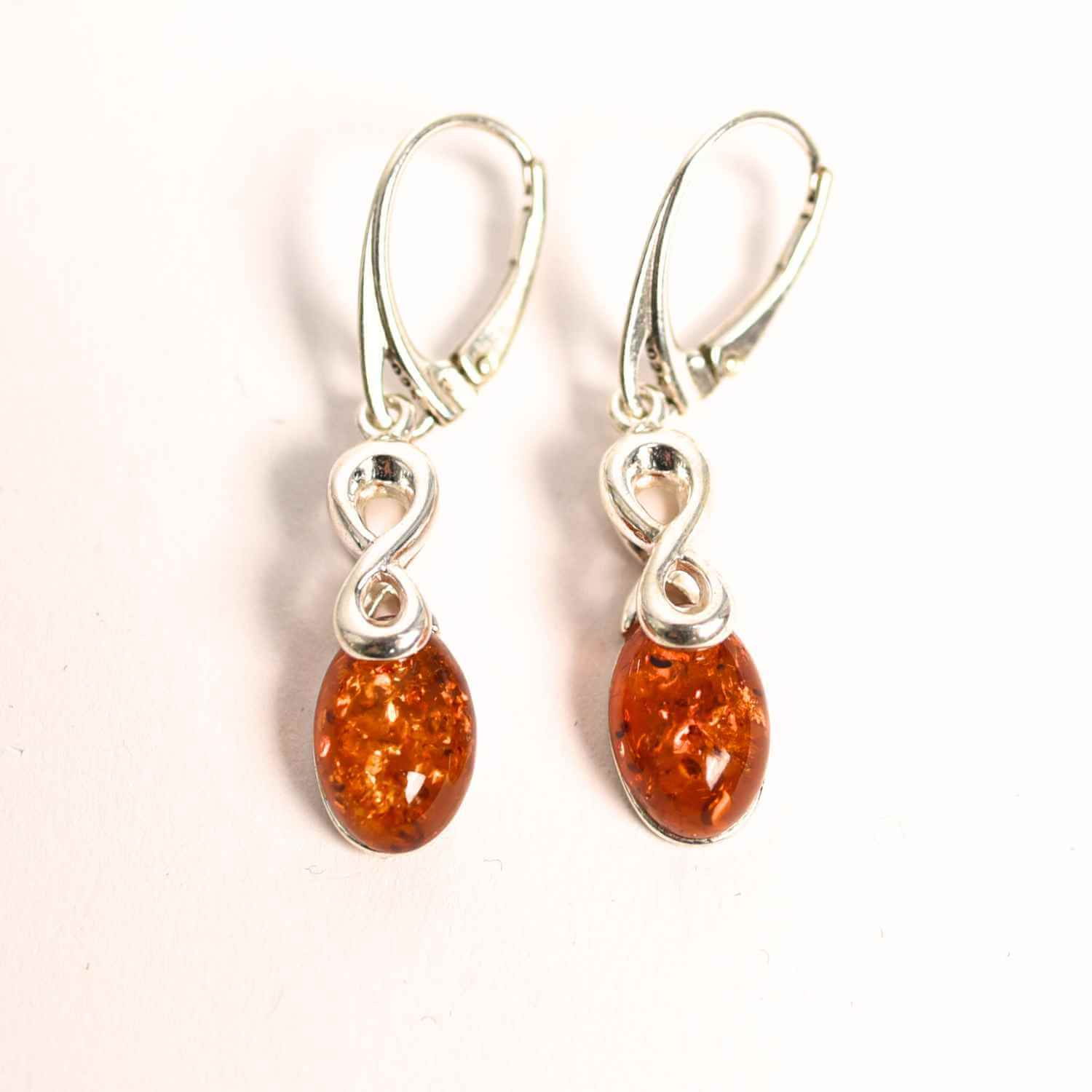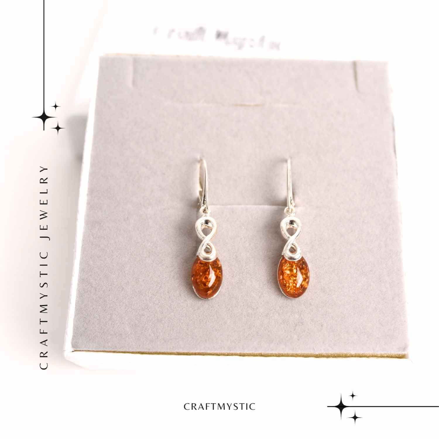 Cercei din Argint 925 cu Chihlimbar - Simbolul Infinit pentru Echilibru si Eleganta