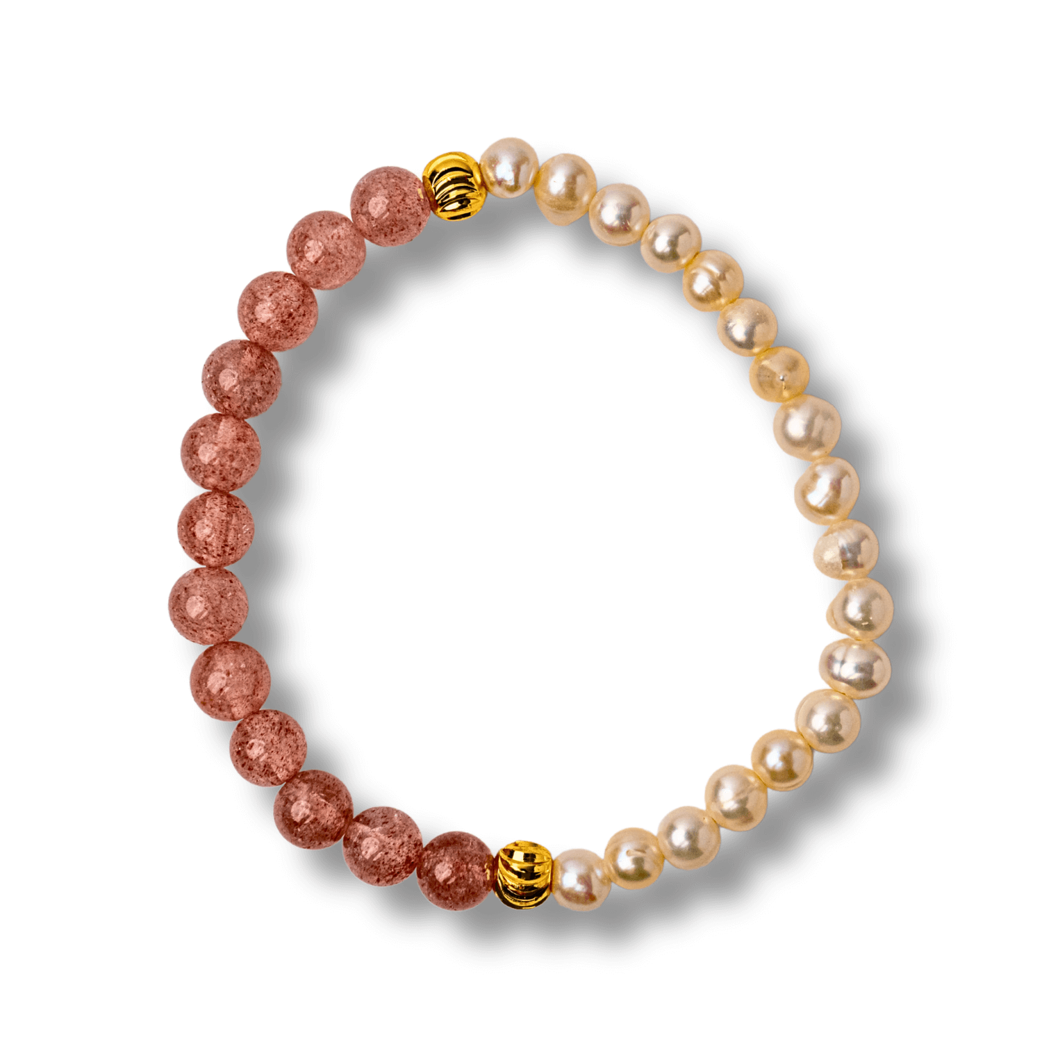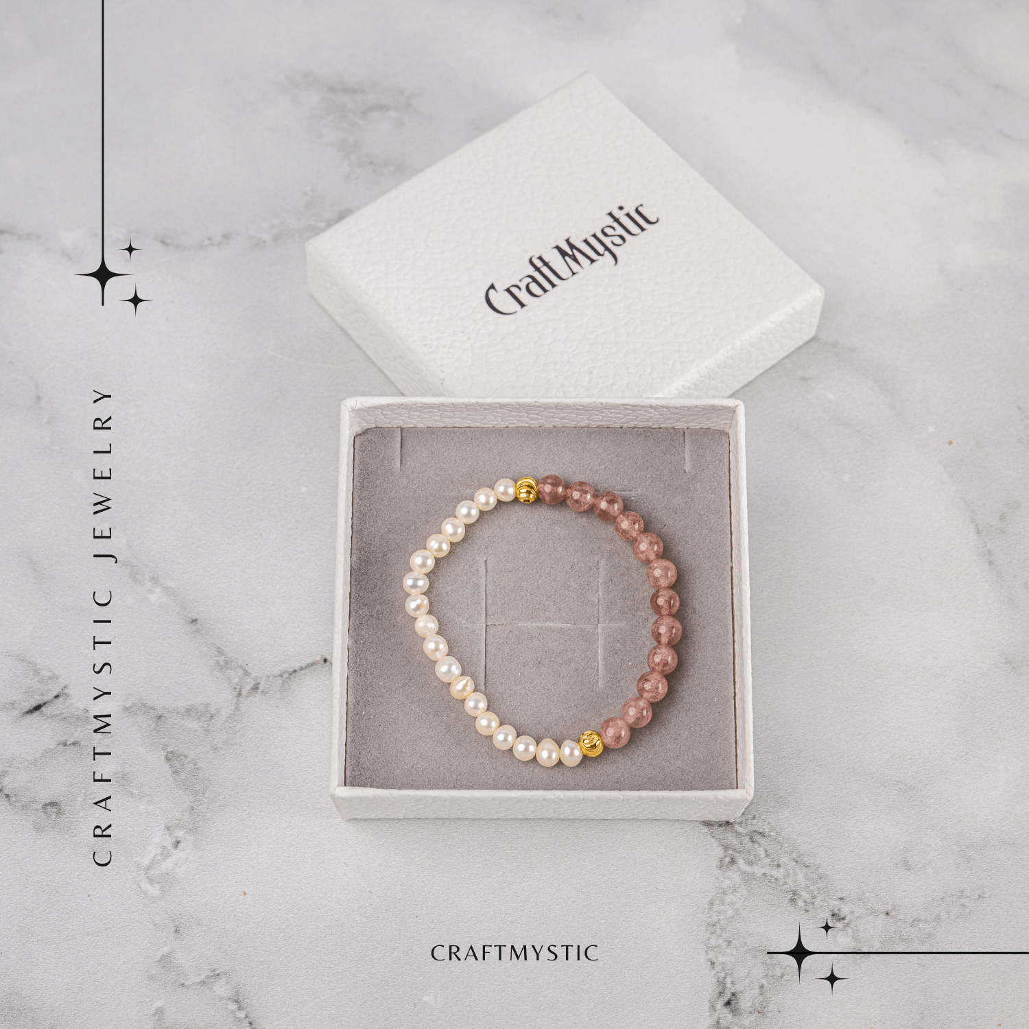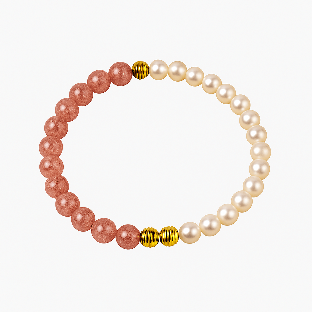 Această brățară delicată îmbină vibrația blândă a Cristalului Căpșună cu eleganța luminoasă a perlelor naturale.