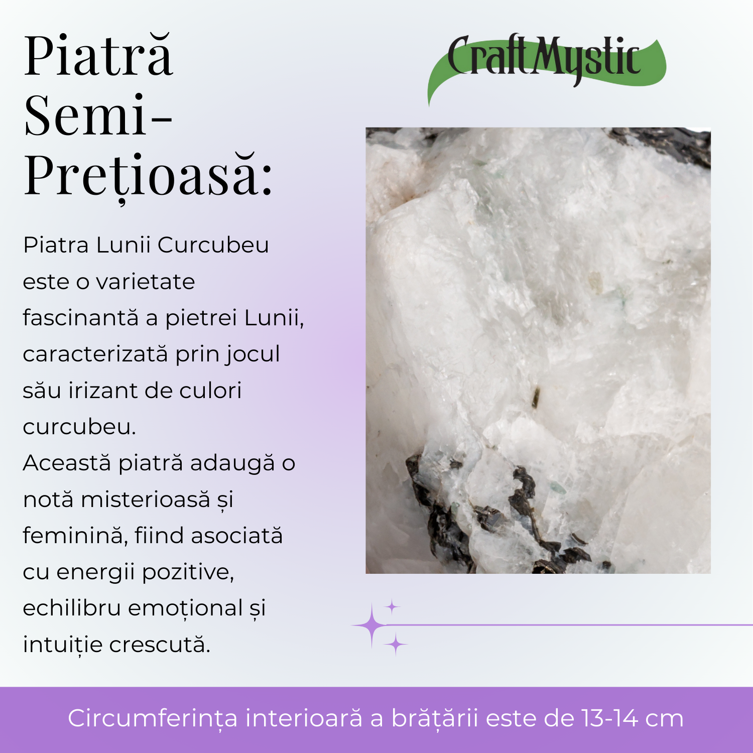 Brățara elastică cu mărgele de 6mm din Piatra Lunii Curcubeu nu este doar un simplu accesoriu, ci un simbol al vindecării emoționale și al echilibrului energetic. Potrivită pentru zodiile Rac, Pești și Scorpion, oferind proprietăți benefice specifice fiecăreia.