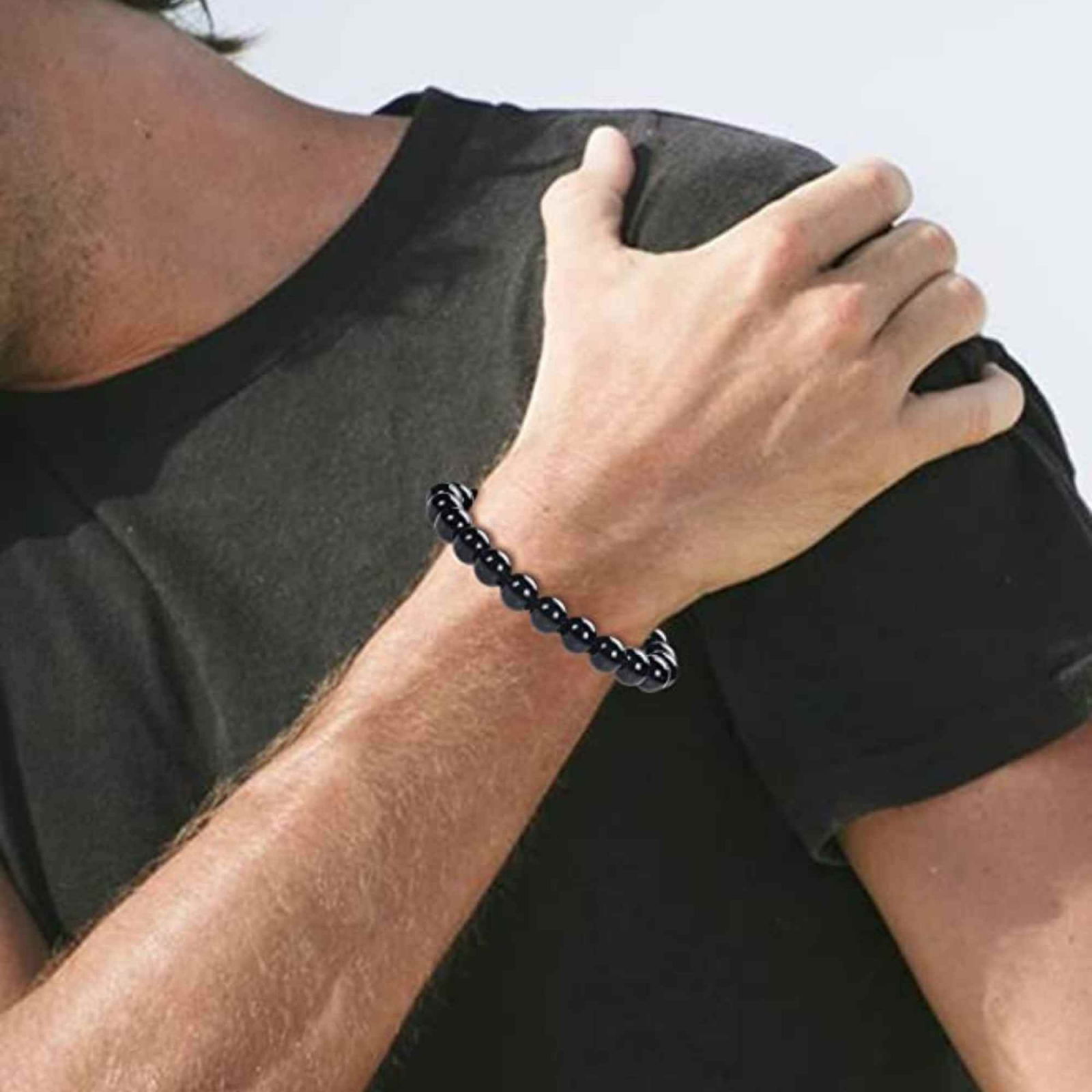 • Material - Onyx Negru. Fara metal, potrivit pentru pielea sensibila. Dimensiune margele - 8mm, Numar margele: 22~24 bucati, Arie de reglare: 18.5 cm - 26.4 cm. Dimensiuni perfecte ca bratara de pietre semipretioase atat pentru barbati cat si pentru femei, UNISEX;