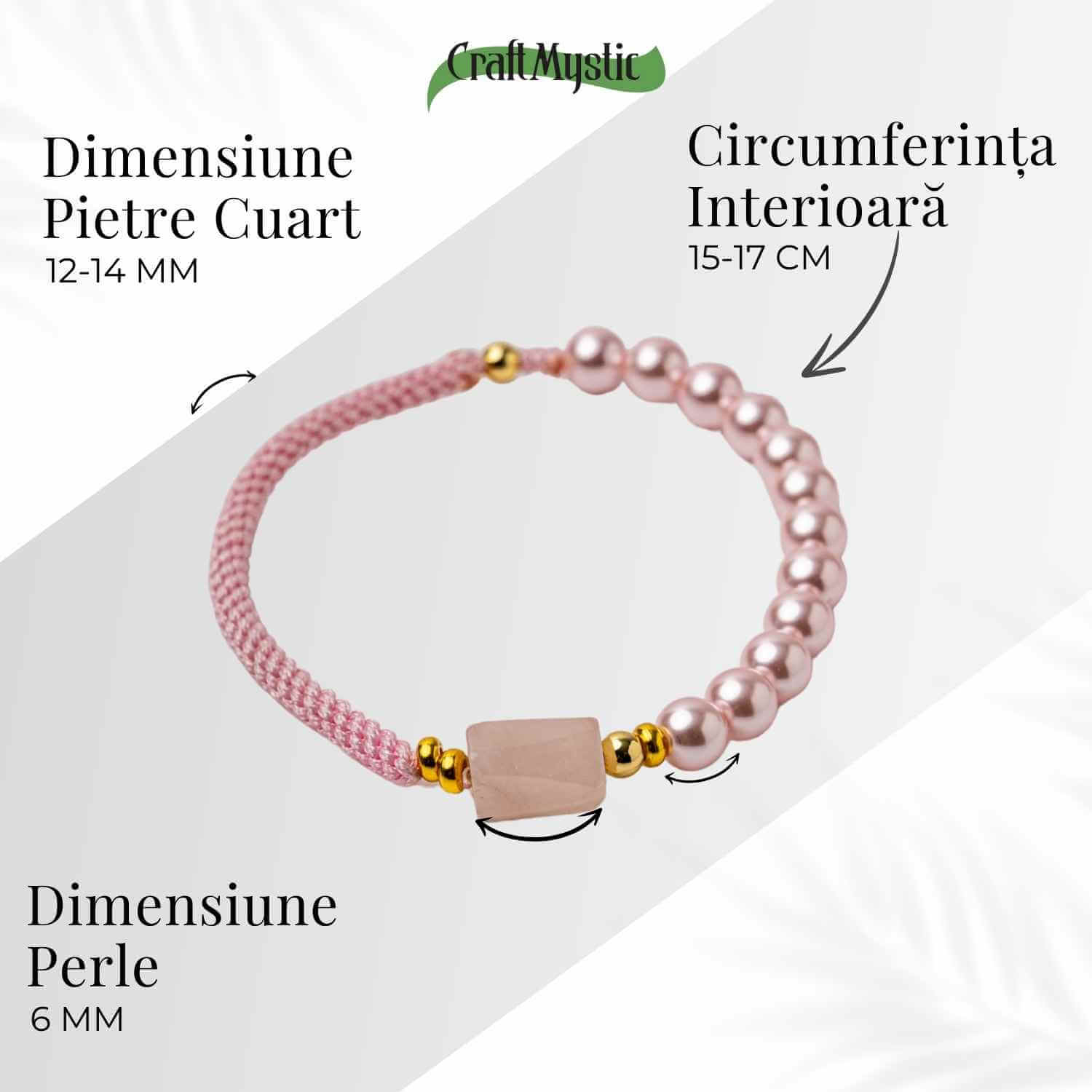 Forma rotundă a perlelor susține energia echilibrului interior, iar piatra naturală de Cuart Roz activează deschiderea inimii, vindecarea emoțională și acceptarea de sine. Brățara devine astfel un talisman al iubirii, frumuseții și liniștii interioare, purtat cu ușurință în fiecare zi.