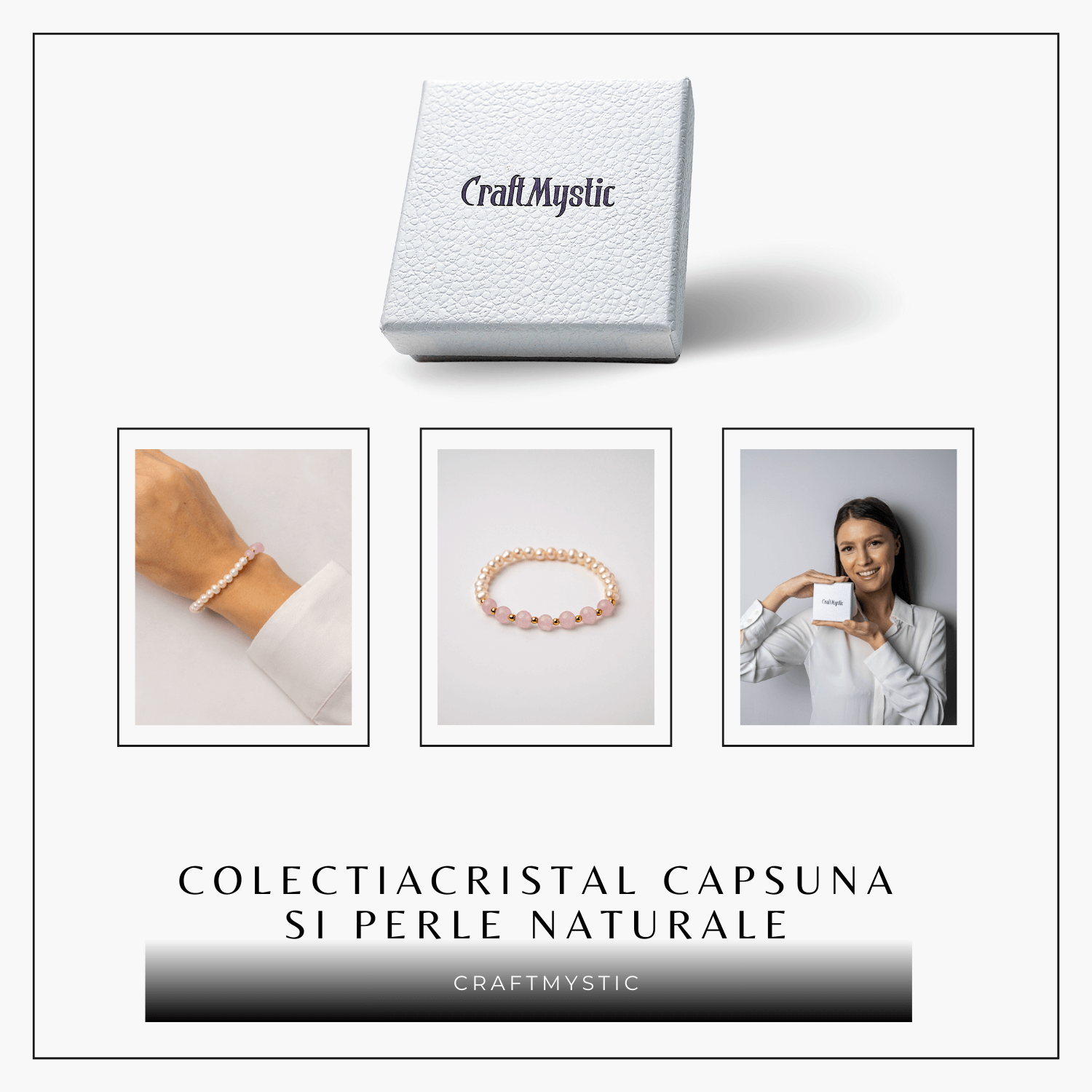 Cuartul Roz este piatra inimii – aduce iubire, compasiune și liniște sufletească, în timp ce perlele naturale inspiră puritate, feminitate și sensibilitate. Împreună, creează o bijuterie gingașă, luminoasă și profund feminină.