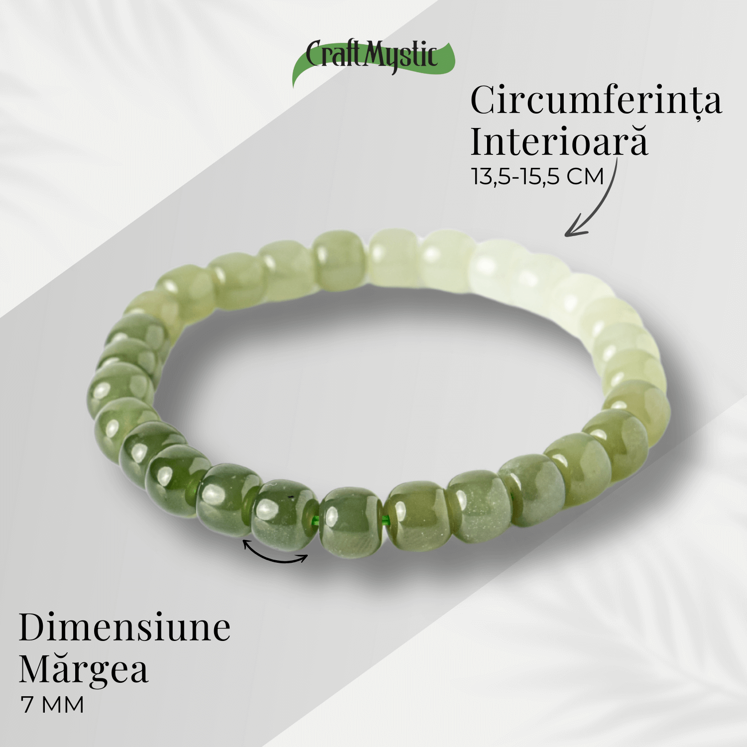 Poarta aceasta bratara ca pe un talisman al vitalitatii si echilibrului interior. Lasa energia nefritului sa-ti aduca pace sufleteasca si protectie subtila, pentru ca fiecare zi sa fie plina de armonie si forta interioara.