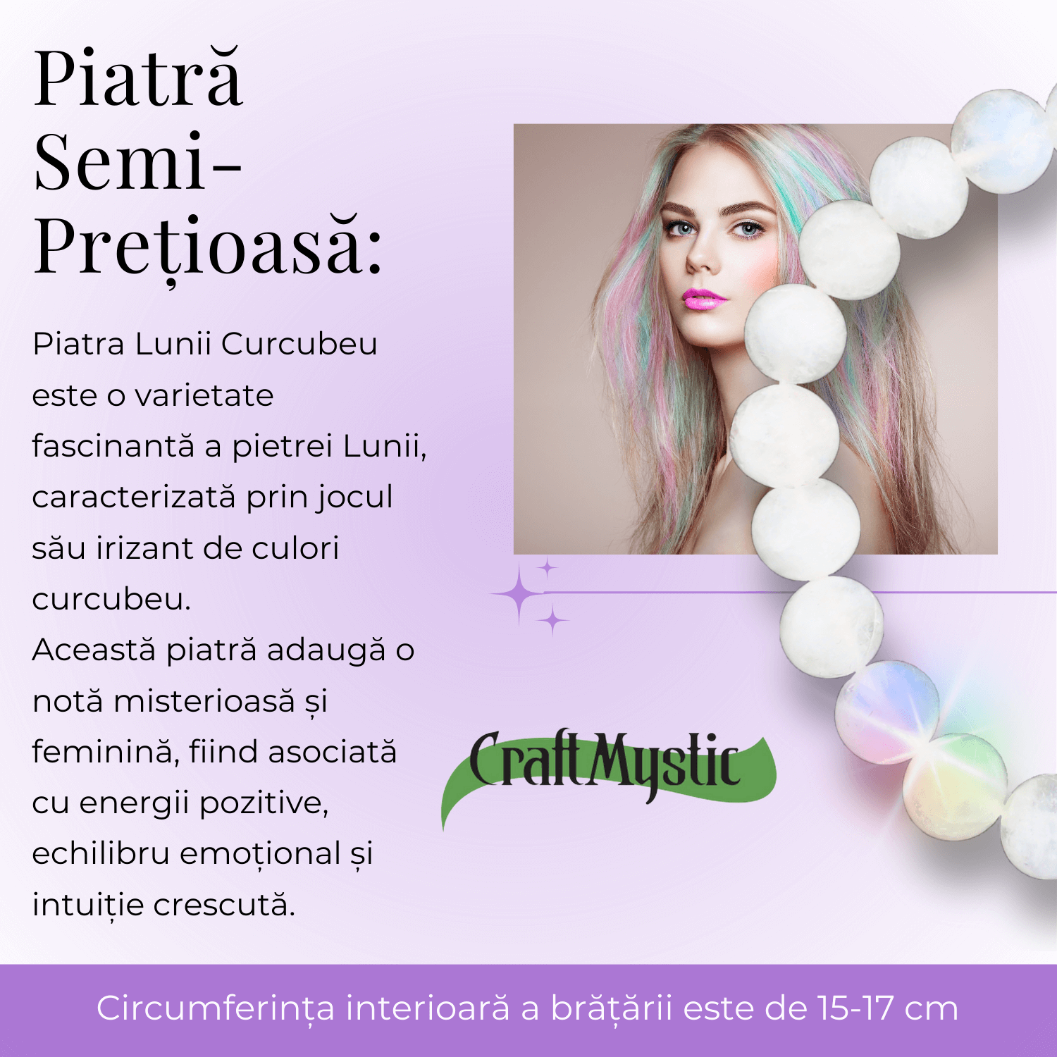 • Beneficii Diverse: Piatra Lunii Curcubeu este recunoscută pentru a aduce claritate emoțională, creștere spirituală și armonie interioară.