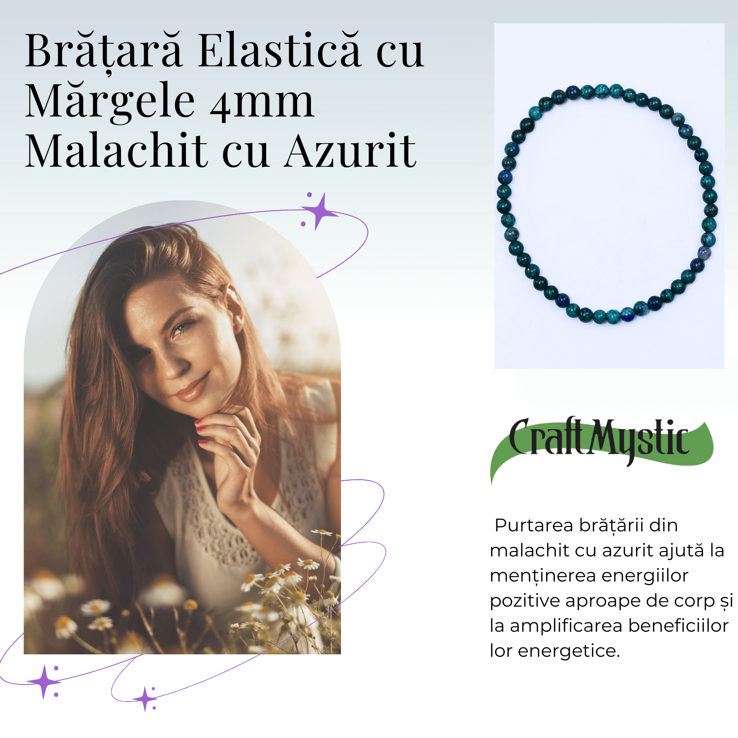 Descoperă acum bratara elastică din Malachit cu Azurit – secretul unei protecții energetice incredibile