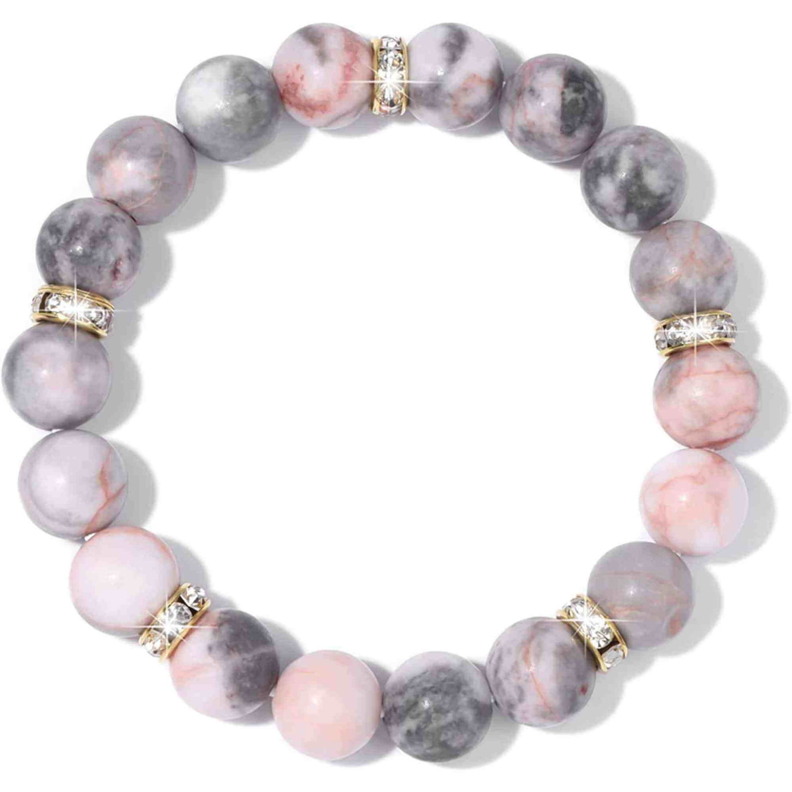 Bratara elastica cu pietre semipretioase zebra stone roz de 10 si 5 mm cu margele aurii si strasuri
