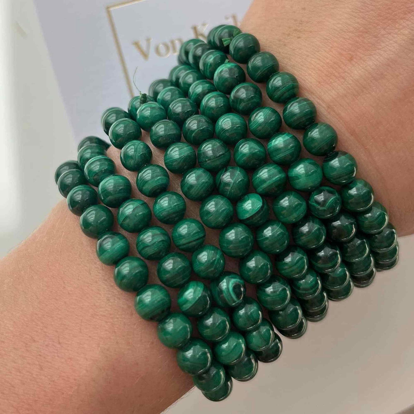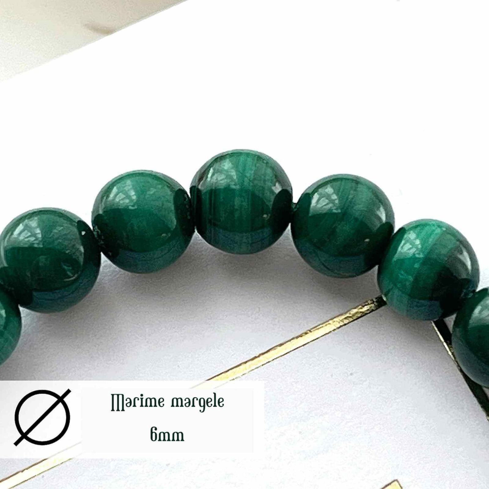 • Calitate Autentica: Bratara noastra din malachit verde este confectionata din malachit autentic de 6 mm, fara coloranti artificiali. Provenind din India, acest material de inalta calitate asigura durabilitatea si autenticitatea produsului, facandu-l o alegere premium pentru cei interesati de cristaloterapie; ATENTIE: Datorita unicitatii pietrelor de malachit exista posbilitatea ca structura de nuante sa fie diferita fata de poze.