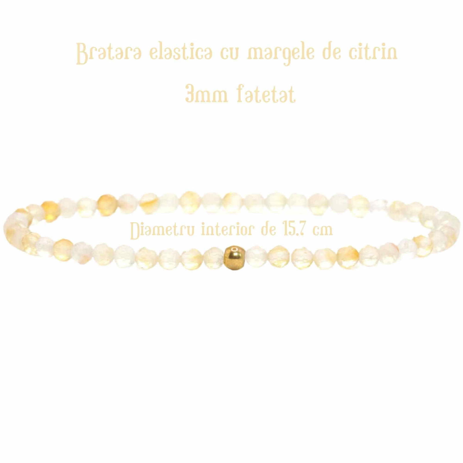 Aceasta bratara eleganta este realizata din citrin fatetat si o bila aurie, emanand stralucire la fiecare miscare. Perfecta pentru a aduce o nota de stralucire si eleganta la orice tinuta.
