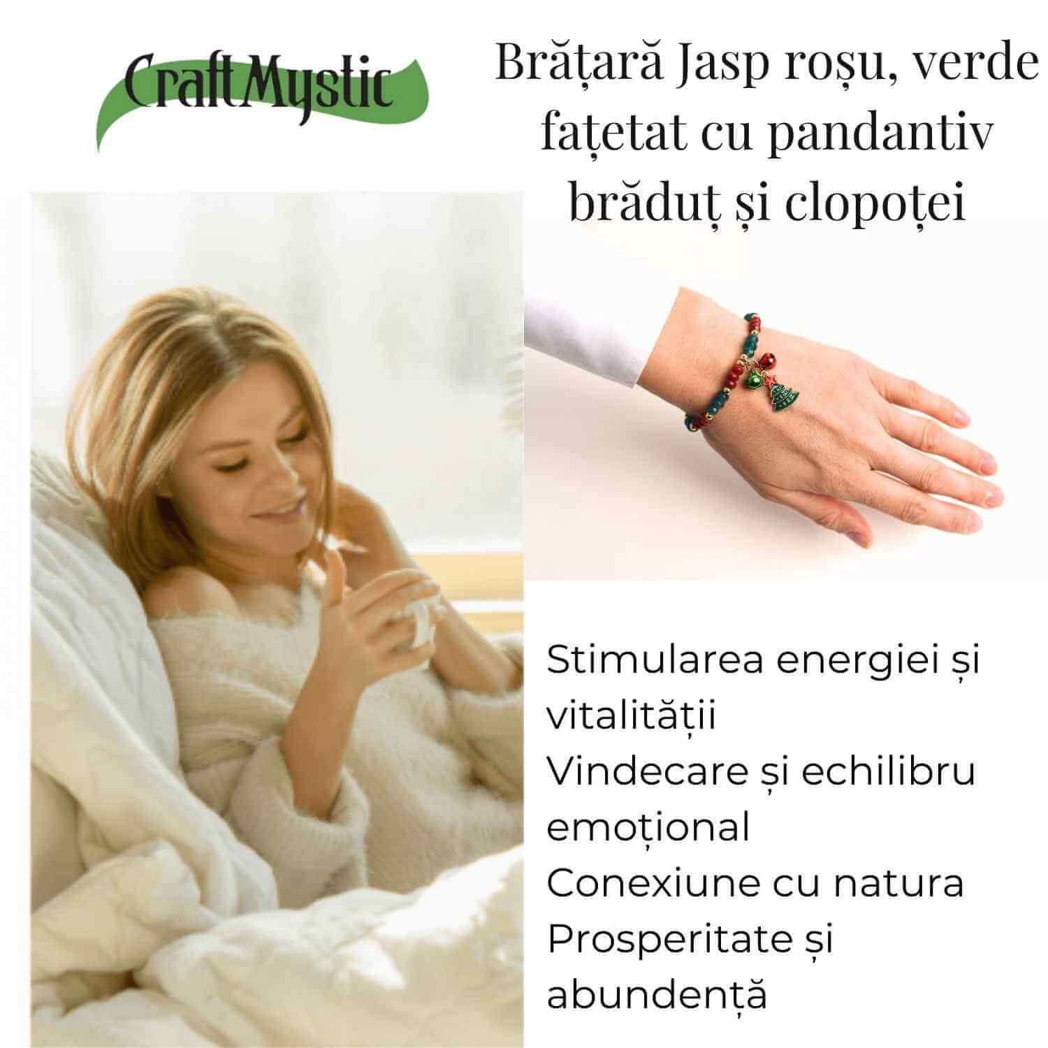 Brățară naturală cu Jasp roșu și verde fatetat: O bijuterie lucrată manual, ideală pentru iubitorii de eleganță și echilibru energetic. Această brățară este perfectă pentru cadouri de sărbători sau ocazii speciale, având un design unic și semnificații profunde.
