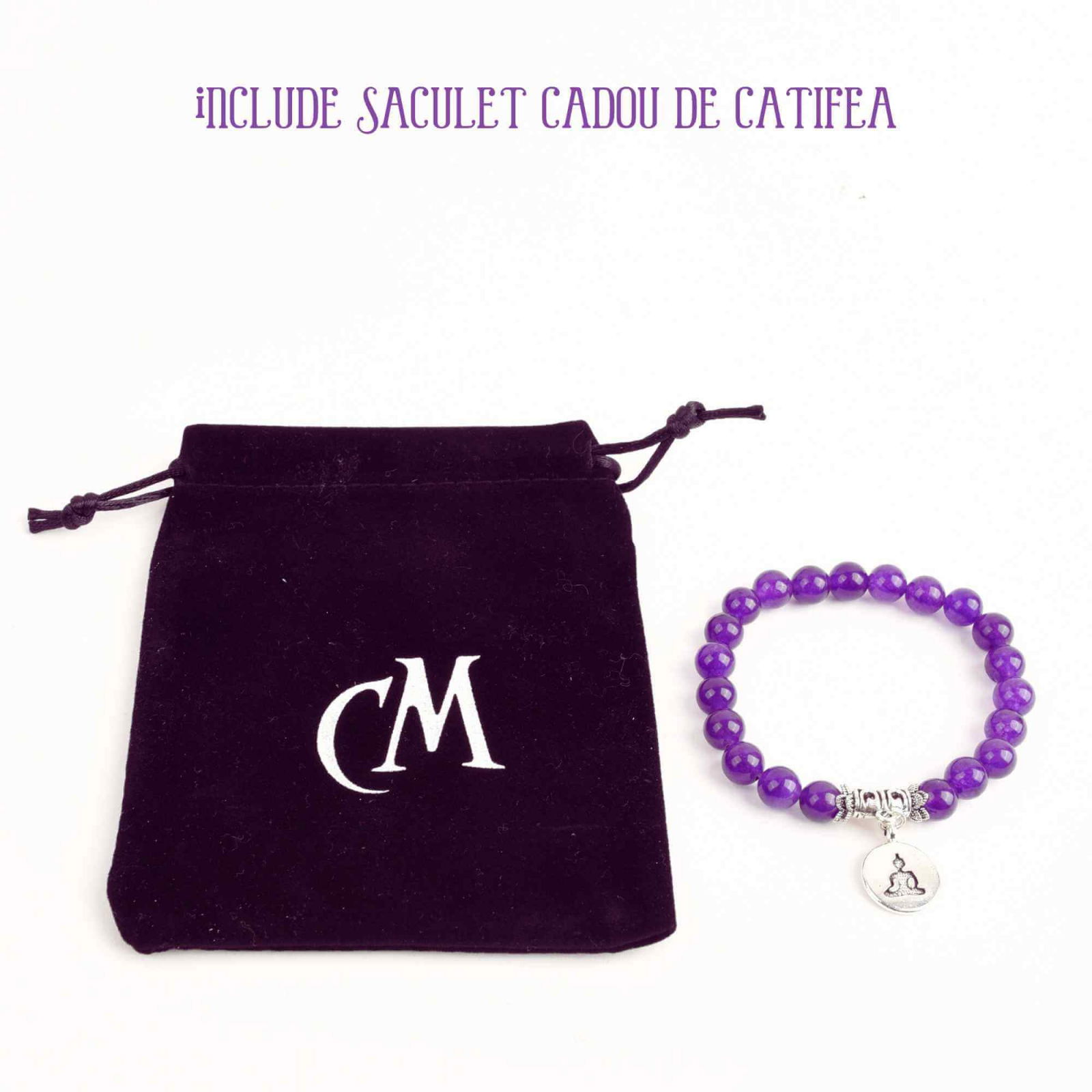 • Bratara elastica unisex este realizata manual din cristale naturale de ametist si pandantiv argintiu gravat cu Buddha.Ametistul este o piatra de vindecare si curatare. Se spune ca are proprietati de stabilitate, calm si intuitie, creste claritatea mintii si faciliteaza luarea deciziilor, este, de asemenea, un calmant natural al stresului. Ametistul este una dintre pietrele ideale pentru meditatie, iar energia sa ajuta la activarea mintii si faciliteaza autoreflectia;