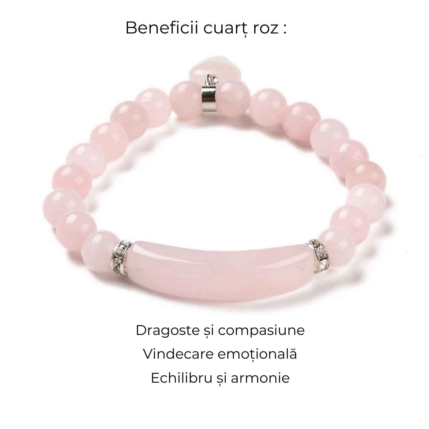 - Iubire și compasiune: Cuartul roz este piatra iubirii, ideală pentru a deschide inima și a atrage relații pozitive și armonioase.