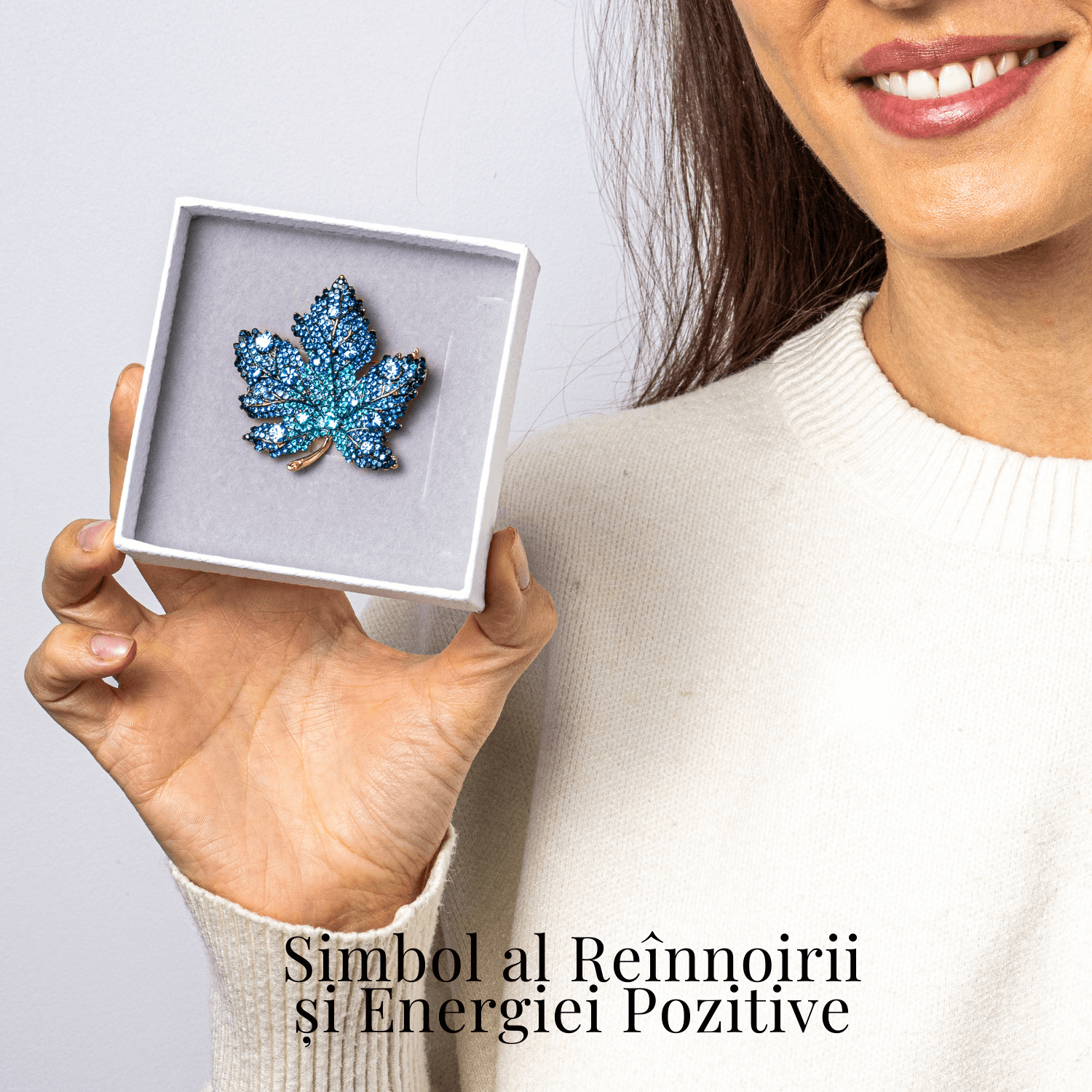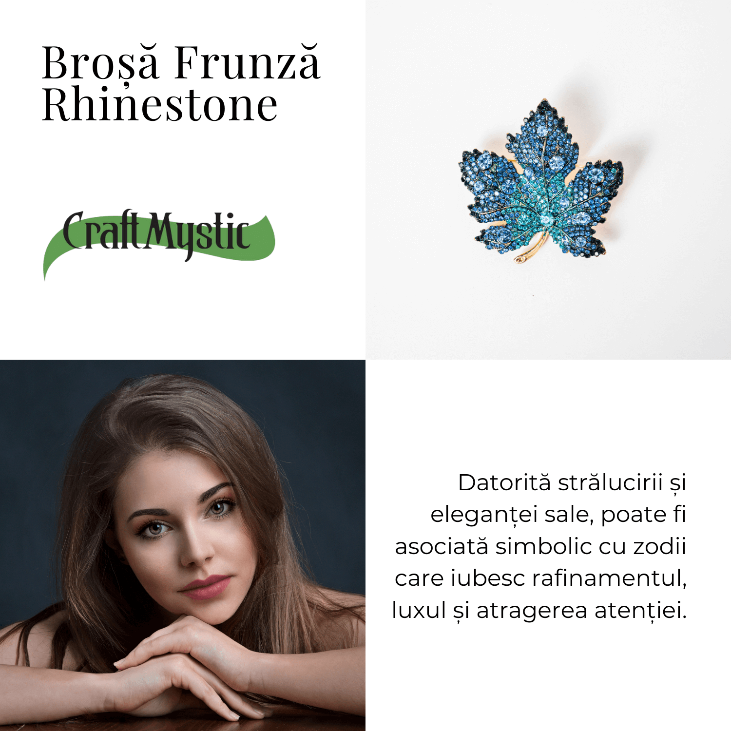 Inspirata din frumusetea naturii, aceasta brosa in forma de frunza de artar este un simbol al reinnoirii si energiei pozitive. Fabricata cu atentie la detalii, combinatia dintre alama placata si pietrele Rhinestone ofera un plus de stralucire si rafinament. Designul sau versatil o face ideala atat pentru evenimente speciale, cat si pentru a adauga o nota de eleganta tinutelor de zi cu zi.