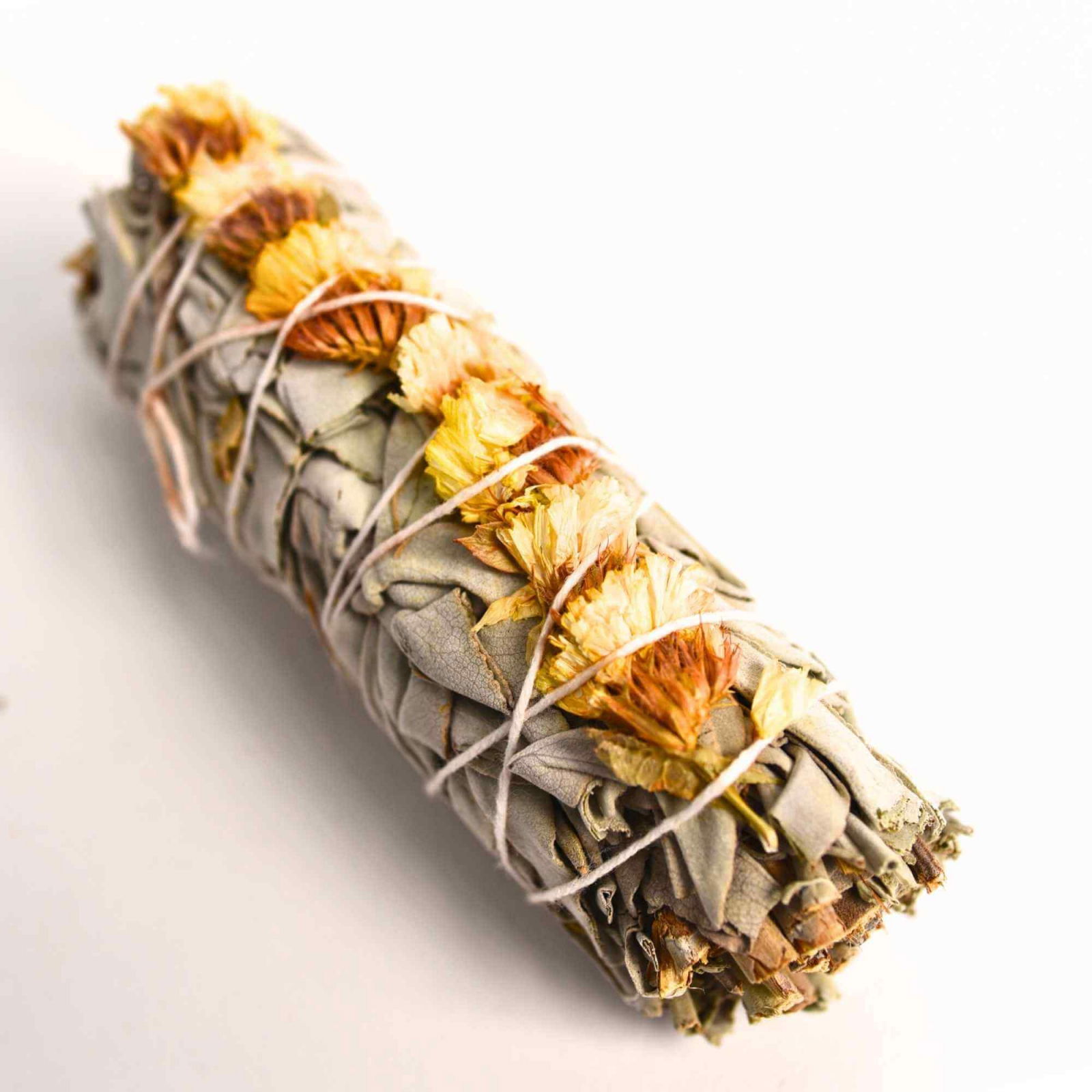 Transformă-ți spațiul într-un sanctuar de pace și energie pozitivă. Achiziționează acum buchetul Salvie Albă California cu Flori Galbene și bucură-te de beneficii remarcabile!