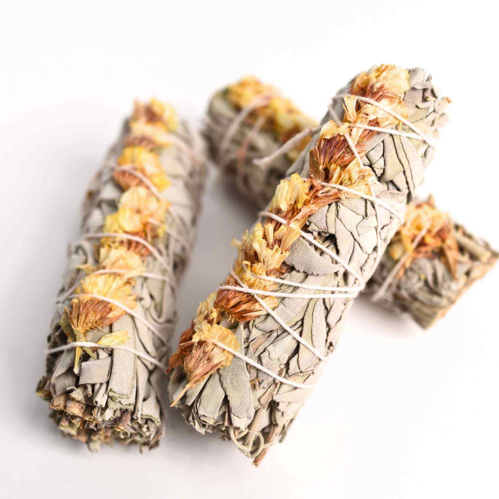 Salvia albă: Este utilizată pentru protecție energetică, curățare spirituală și echilibrare emoțională.