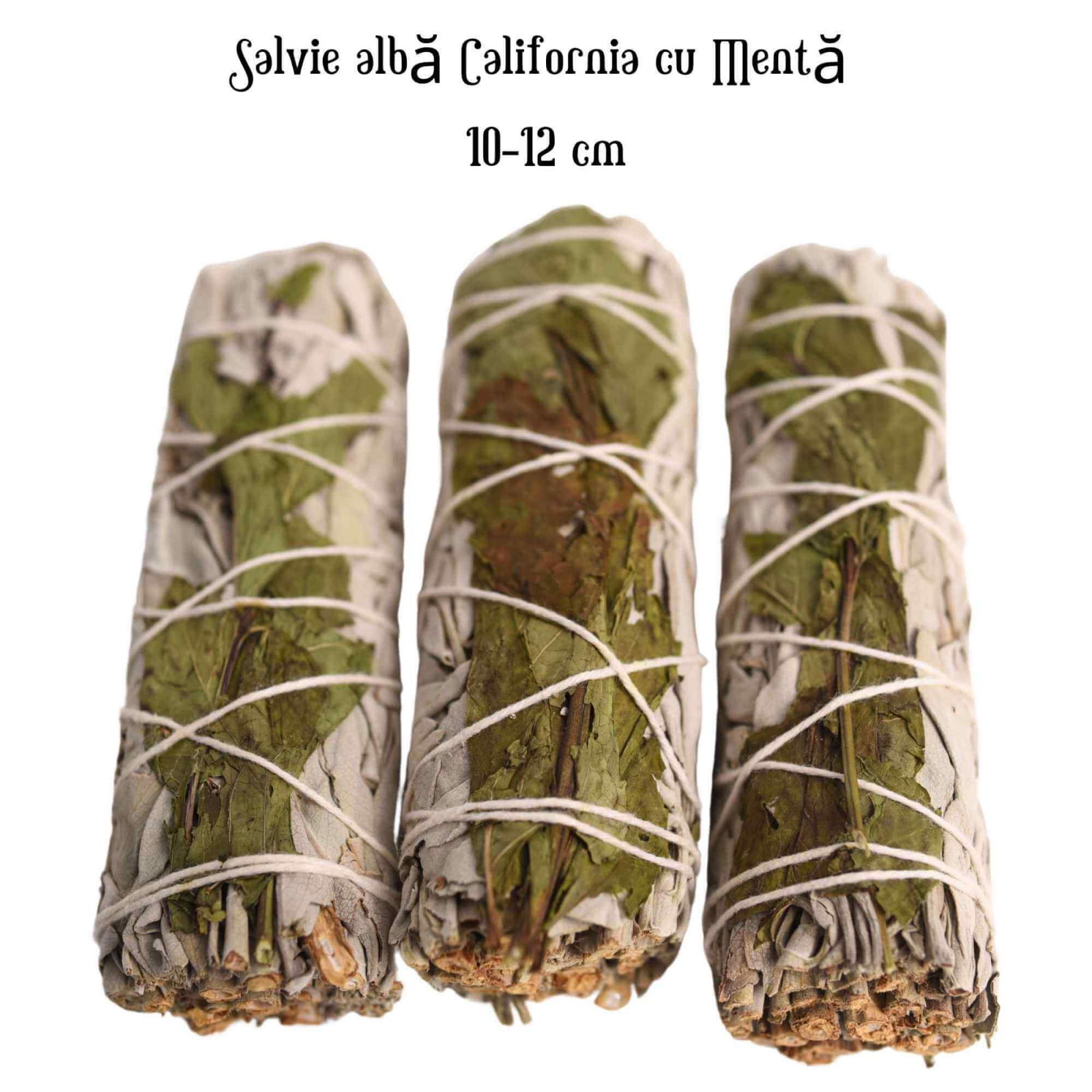Materiale: Salvie alba si menta 100% naturale, lucrate manual. Fiecare buchet prezinta variatii unice de textura si culoare.