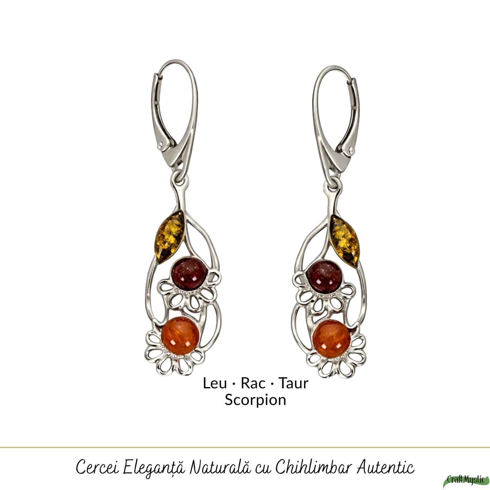 Îți pui cerceii înainte să pleci la o întâlnire sau la o plimbare într-o zi însorită. Designul floral atrage privirea discret, iar chihlimbarul captează lumina într-un mod cald și elegant. Sunt perfecți pentru o rochie feminină sau o ținută simplă, dar rafinată.