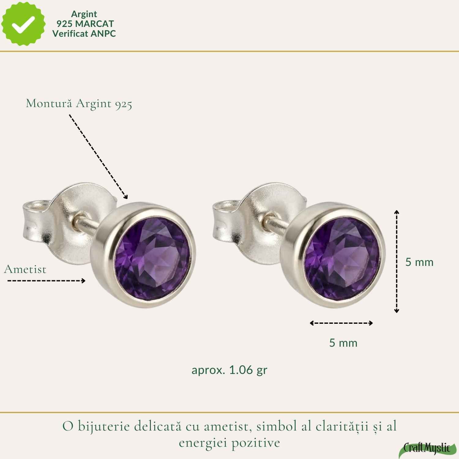 Uneori cele mai mici bijuterii spun cele mai frumoase povești. Ametistul, cu nuanța sa profundă de violet, aduce o energie calmă și elegantă. Acești cercei delicați sunt perfecți pentru momentele în care vrei să porți ceva discret, dar special.