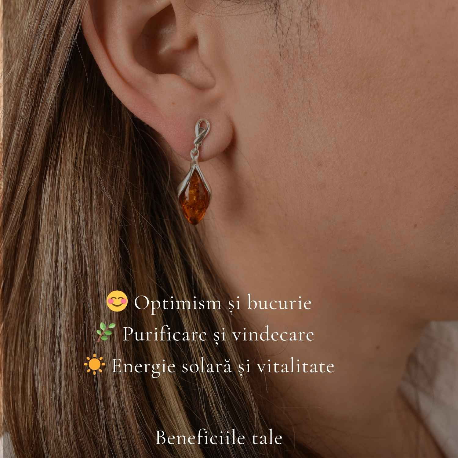 Îi pui dimineața, înainte să pleci din casă, iar lumina se reflectă delicat în chihlimbar. Se potrivesc perfect cu o rochie simplă, o cămașă elegantă sau chiar cu o ținută casual.
