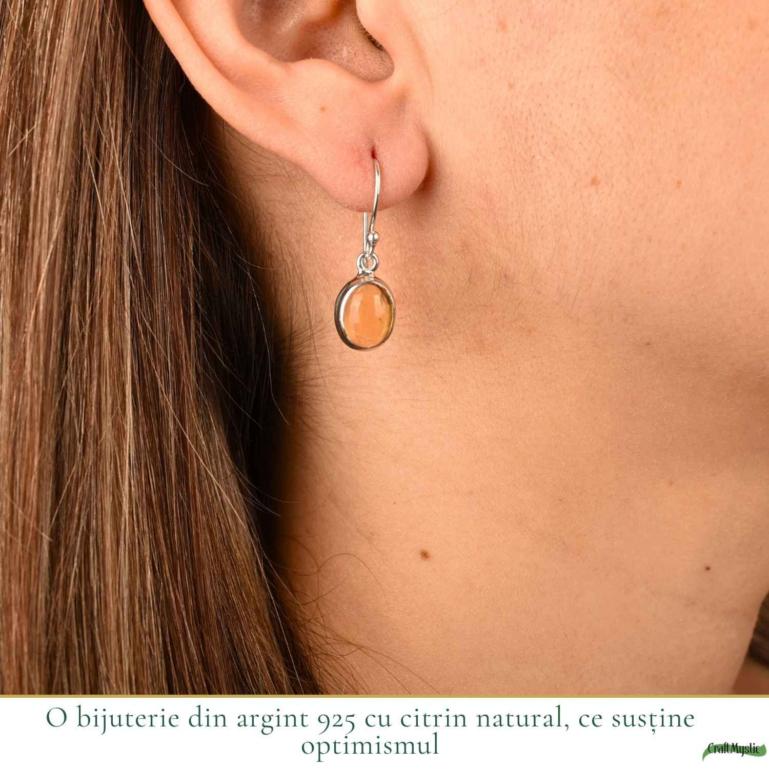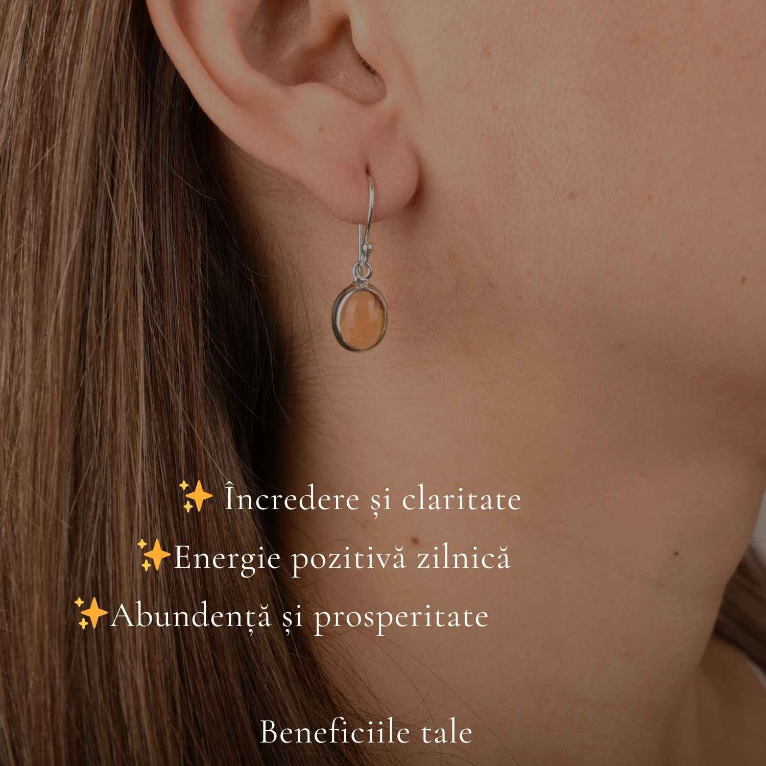 Cercei eleganți din argint 925 cu citrin natural în formă ovală, creați pentru a aduce echilibru, încredere și energie pozitivă în fiecare zi. Cu o prezență delicată, dar vizibilă, îți luminează subtil orice ținută.