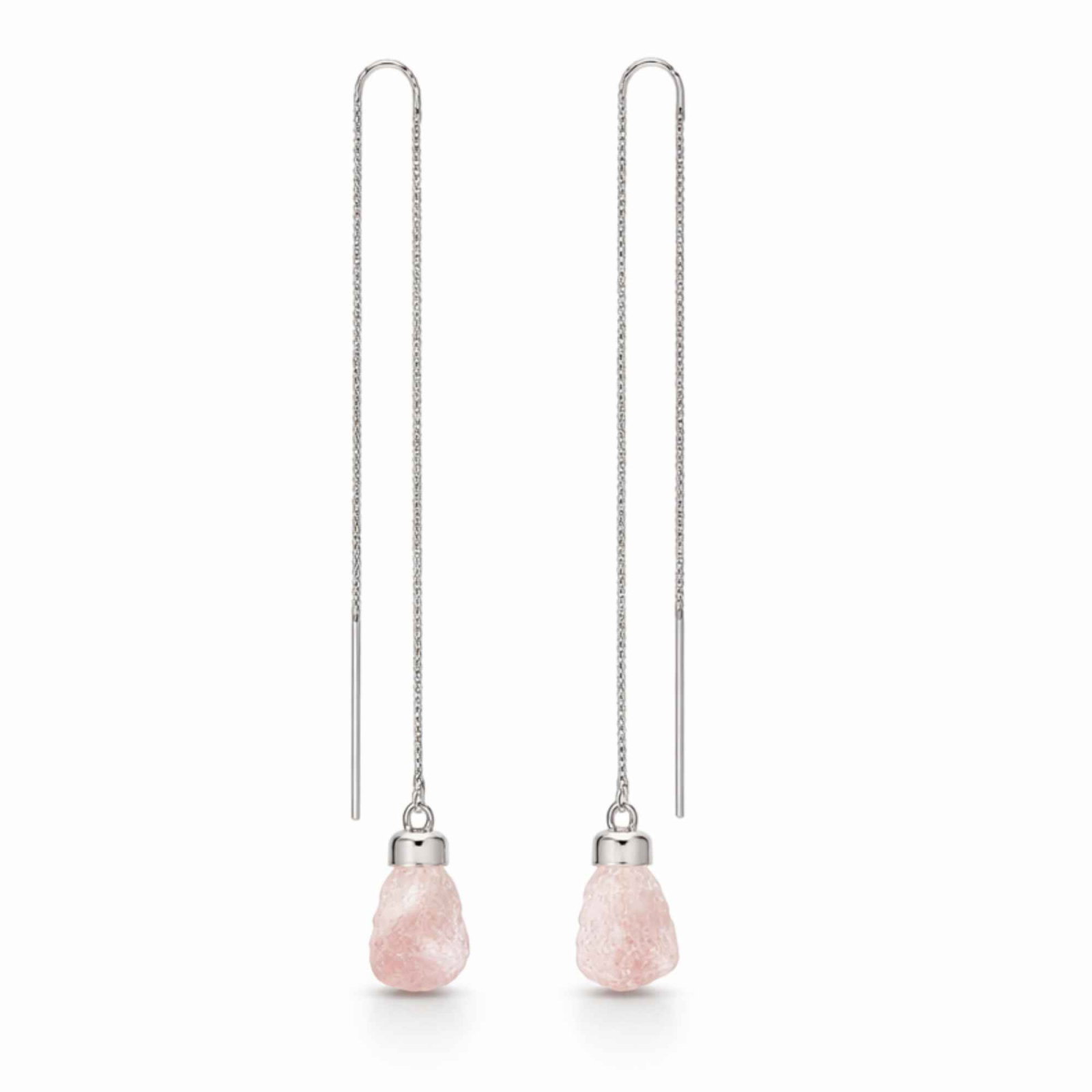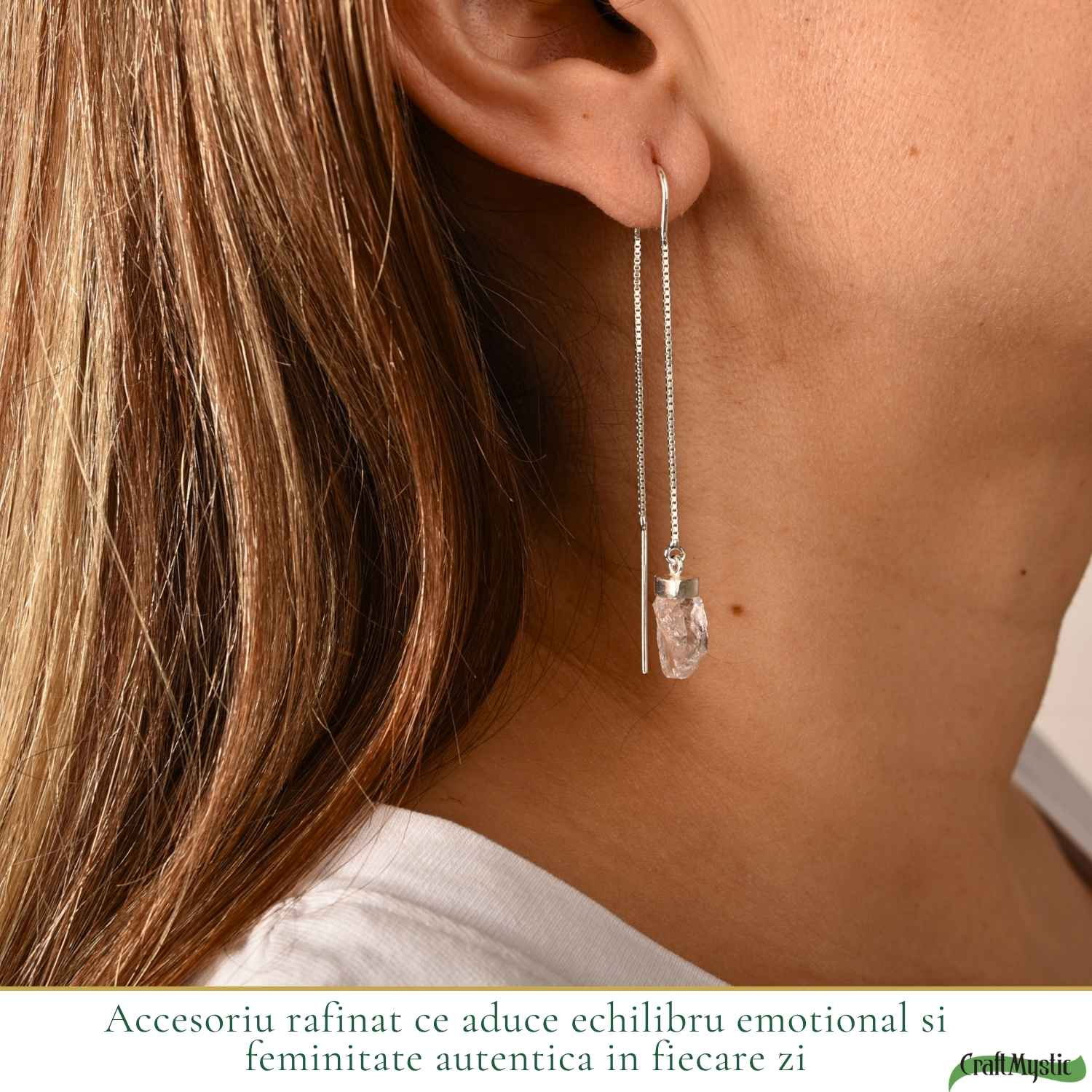 Cercei din argint 925 cu cuart roz natural brut și lanț fin, ce îmbină naturalețea cu eleganța în mișcare. Ușori și plini de energie blândă, sunt alegerea perfectă pentru un look feminin și autentic.