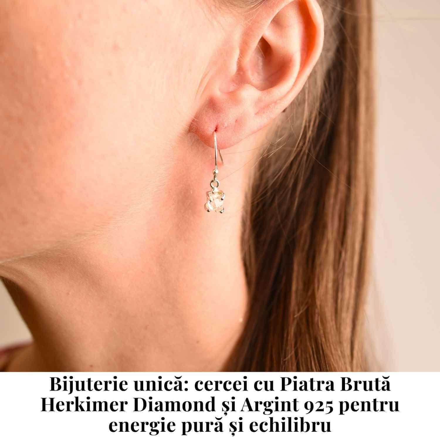 Acesti cercei din Argint 925 cu Herkimer Diamond brut sunt o expresie pura a luminii interioare si a energiei cristaline. Forma bruta pastreaza forta naturala a cristalului, aducand autenticitate si putere, iar Herkimer Diamond este simbolul claritatii mentale, al energiei pure si al protectiei subtile. Bijuteria devine astfel un ghid spre echilibru si vibratii inalte.