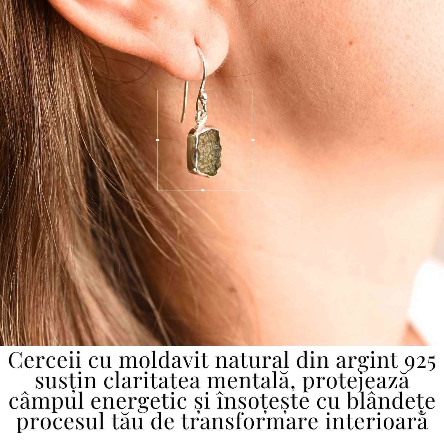Acești cercei lucrati cu atenție în argint 925 și decorați cu Moldavit natural neuniform te conectează la vibrații înalte și îți susțin parcursul interior de evoluție. Cu o formă unică pentru fiecare piatră, aceștia devin mai mult decât bijuterii – sunt talismane personale de transformare.