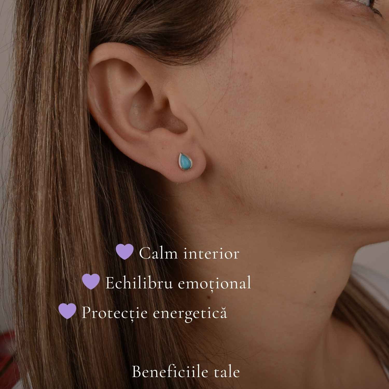 Sunt acei cercei pe care îi porți și simți instant o stare de liniște. Turcoazul are ceva blând și protector, ca o energie care te însoțește discret în fiecare zi.