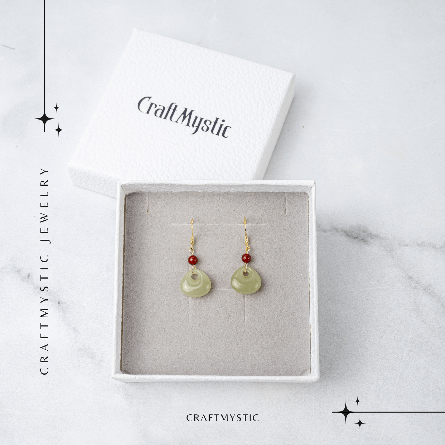 Acești cercei din Argint 925 placat cu aur, combinație de Hetian Jade și Agat Roșu natural, îmbină armonia și forța vitală într-un echilibru perfect.