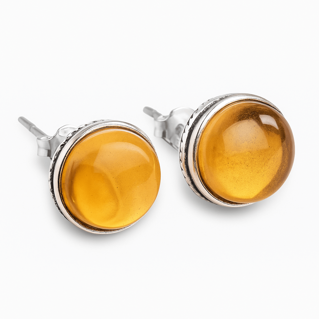 Cercei Argintii cu Citrin si Inchidere Clasica cu Surub