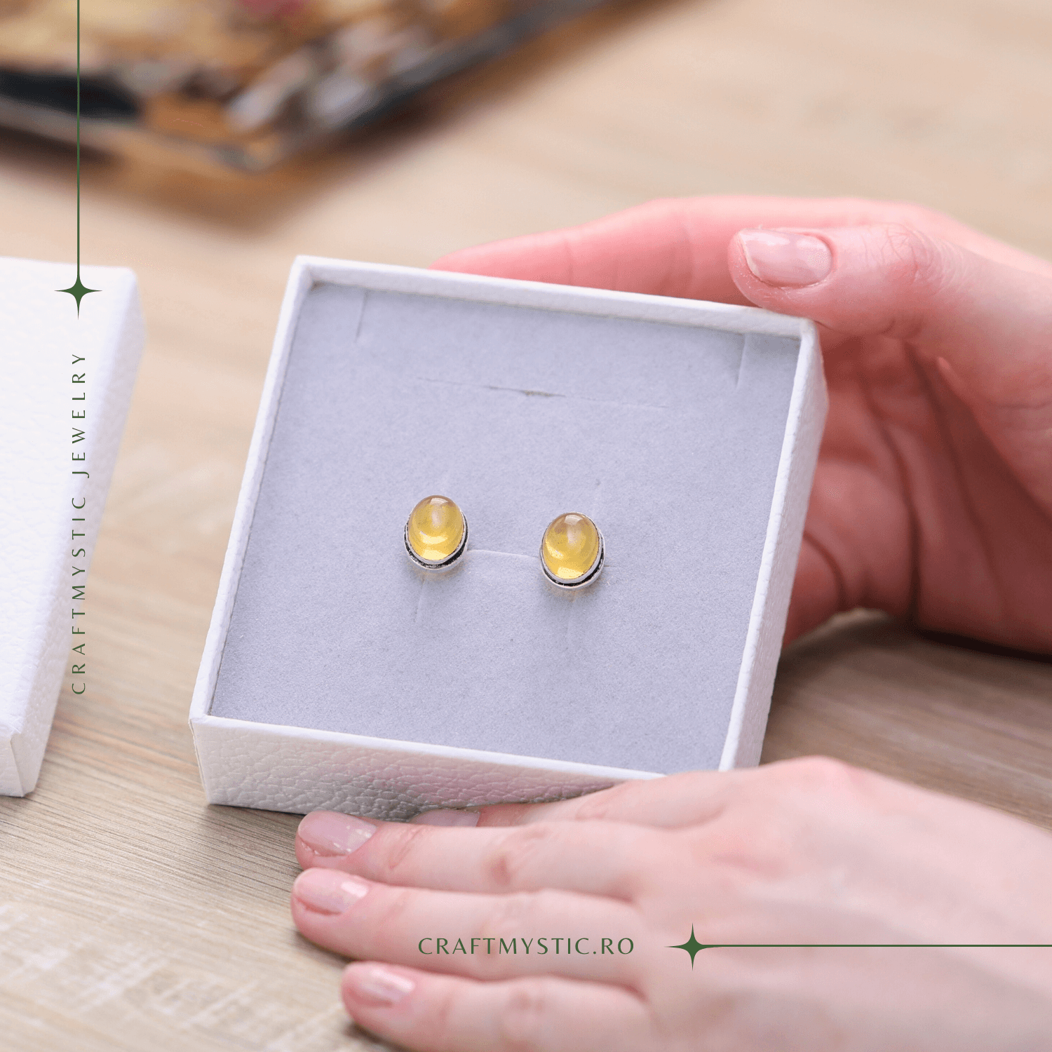 Bijuteriile vin în săculeț de satin sau în cutie CraftMystic. Produsele decorative sunt protejate cu folie cu bule; unele includ cutii cadou.