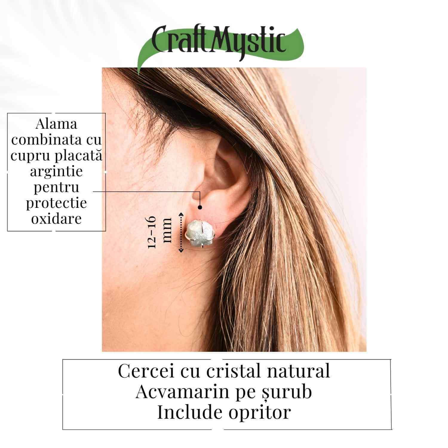 - Îngrijire ușoară: Curăță cerceii cu o cârpă moale pentru a menține strălucirea metalului și frumusețea acvamarinului brut.