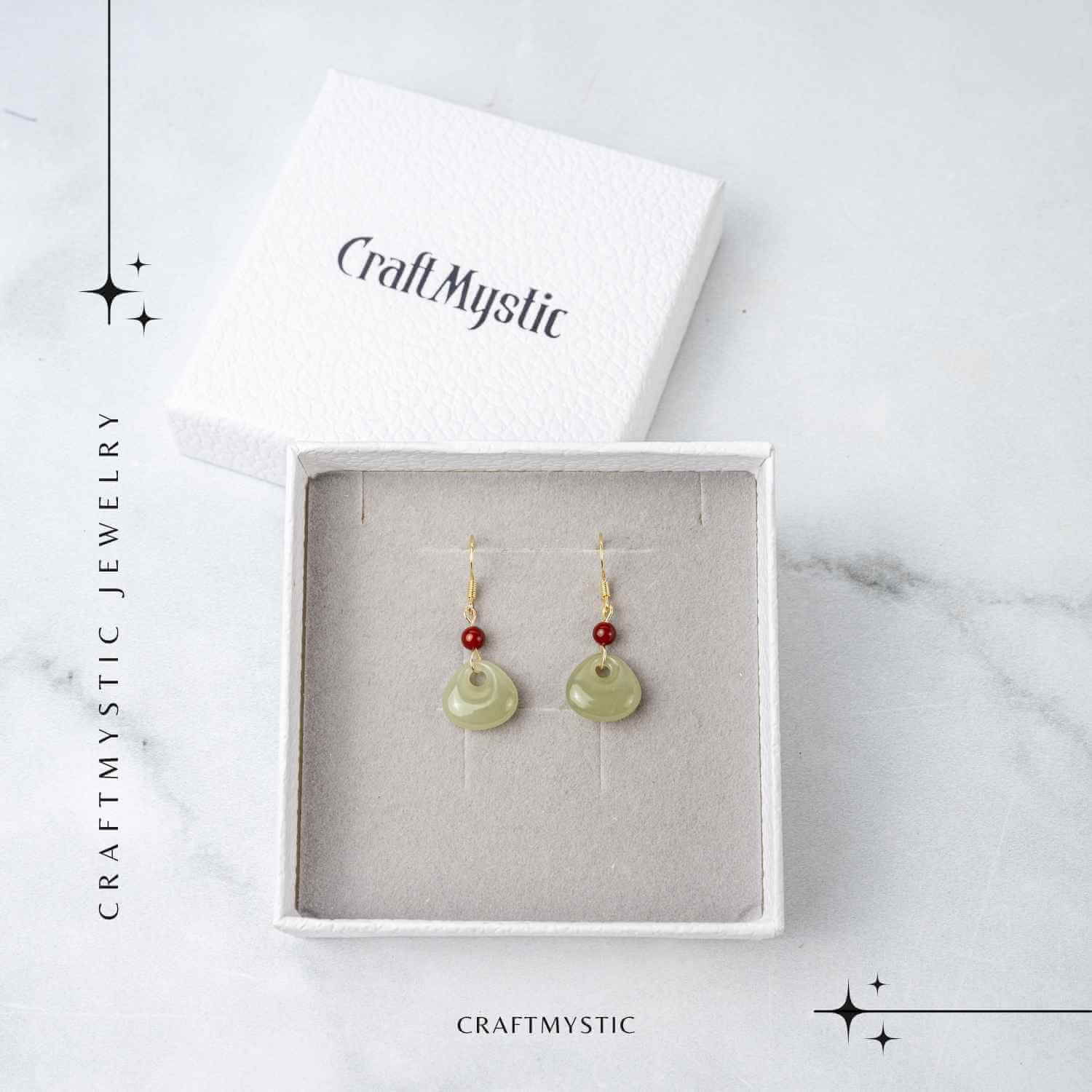 Acești cercei din cupru, combinație de Hetian Jade și Agat Roșu natural, îmbină armonia și forța vitală într-un echilibru perfect.