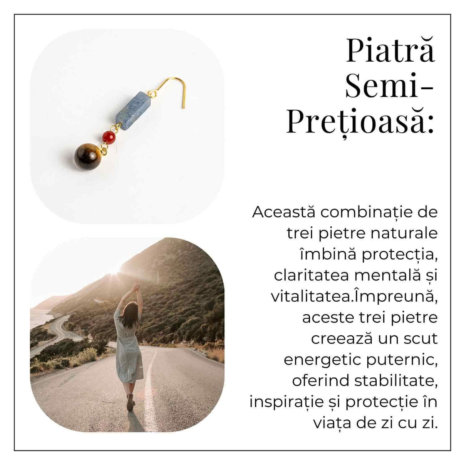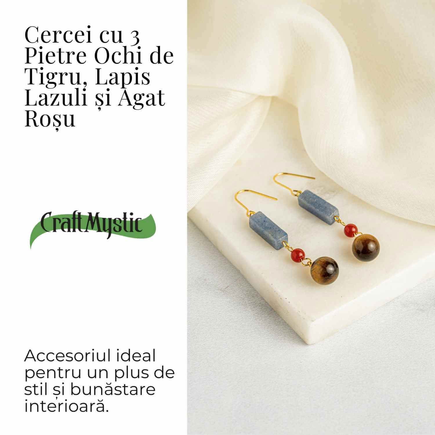 Adaugă o notă de protecție, echilibru și energie pozitivă în viața ta! Alege acum cerceii cu Lapis Lazuli, Agat Roșu și Ochi de Tigru pentru un look elegant și beneficii esențiale!