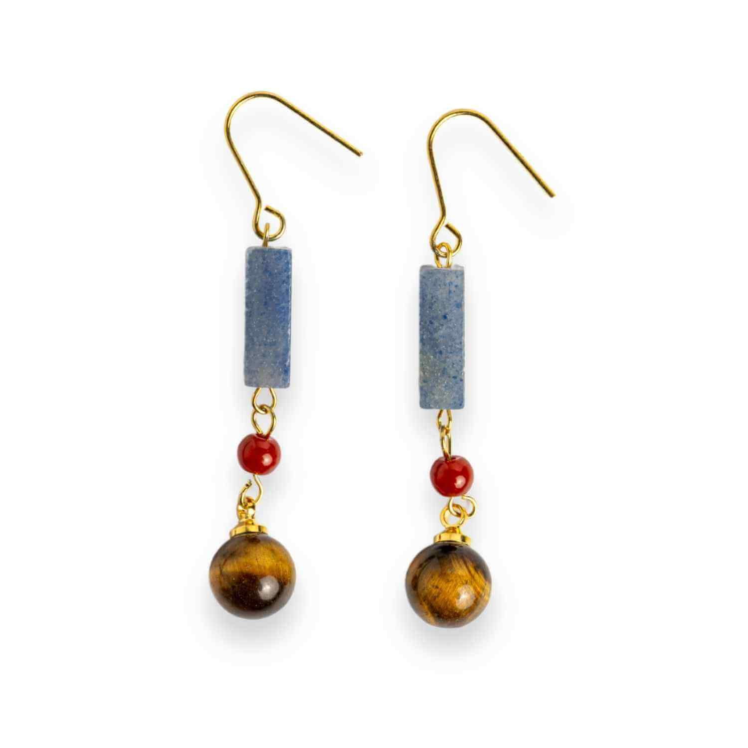 Unic și elegant! Cerceii cu Lapis Lazuli, Agat Roșu și Ochi de Tigru pentru protecție și echilibru emoțional.