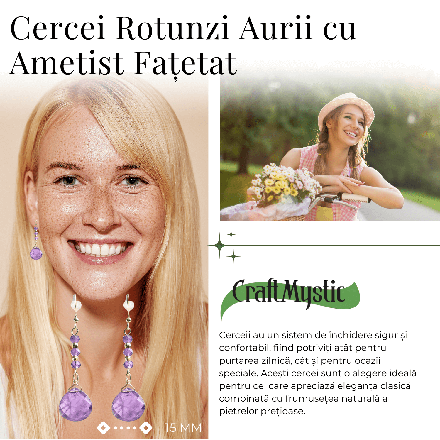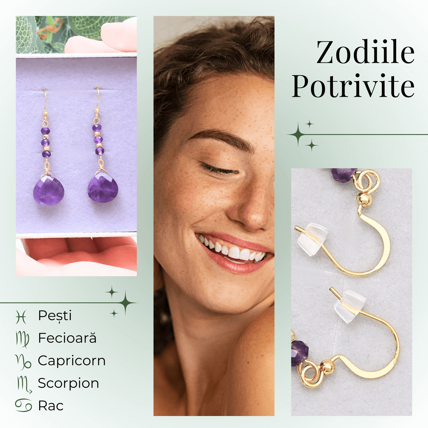 2. Încărcare Energetică: Înainte de a-i purta, ține cerceii în mâini câteva secunde pentru a te conecta la energia ametistului.