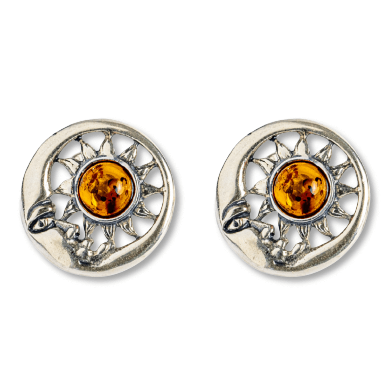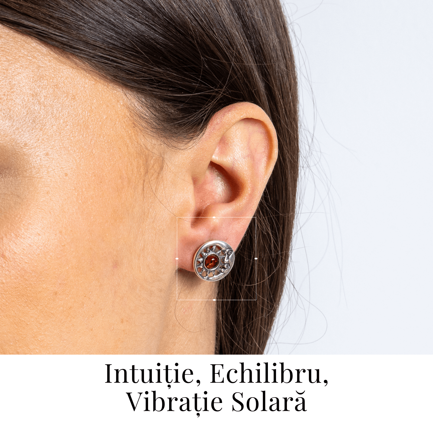 Soare și Lună în Armonie – Cercei spirituali cu chihlimbar și argint 925
