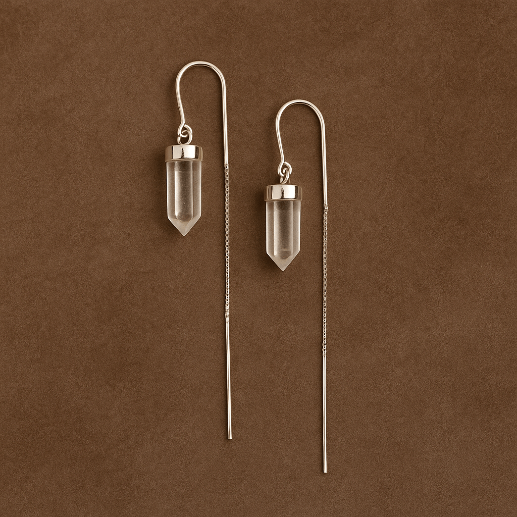 Rafinați și eleganți, acești cercei din cuart de stâncă aduc o notă de lumină pură fiecărei apariții. Simplitatea designului evidențiază frumusețea naturală a cristalului, în timp ce energia sa strălucitoare îți conferă claritate mentală și echilibru.