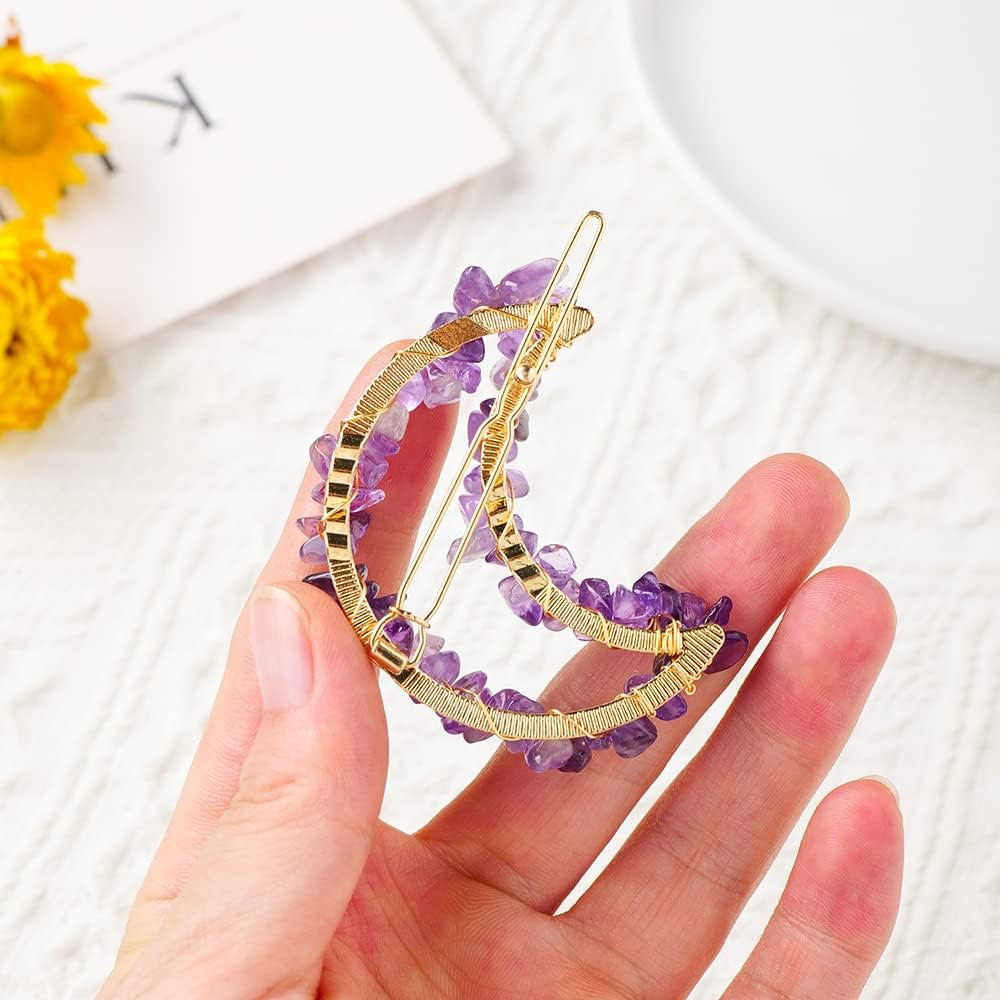 Agrafa de par fina, eleganta in forma de semiluna cu cristale pe marginea exterioara