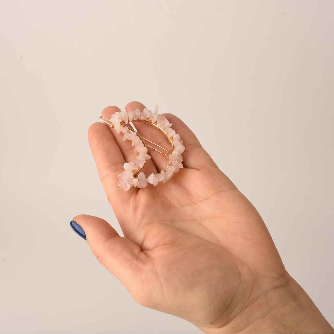 Cleme de par in forma de semiluna cu piatra naturala semipretioasa Cuart roz pentru un look chic si vibratii pozitive